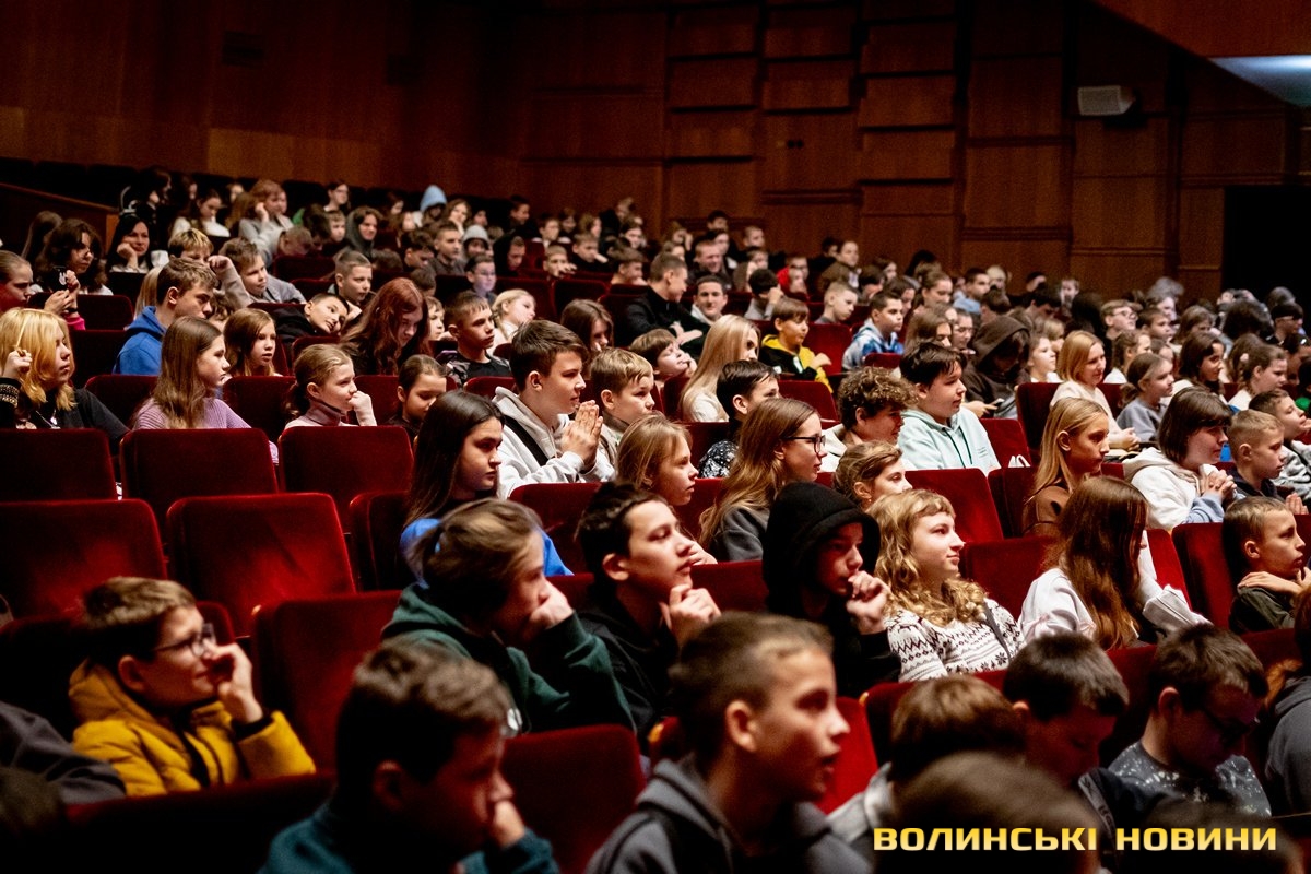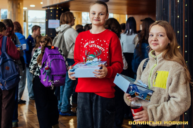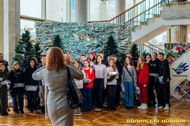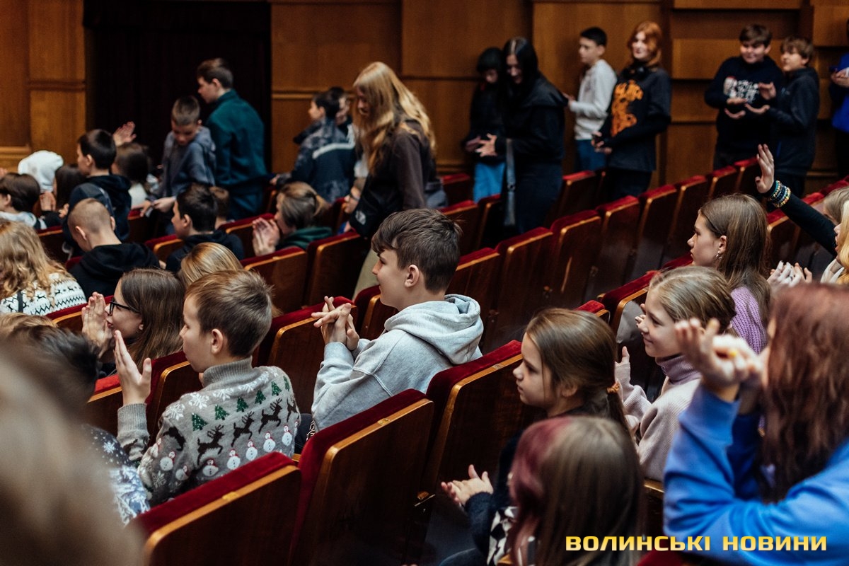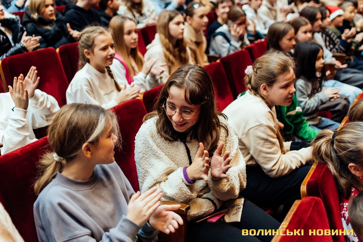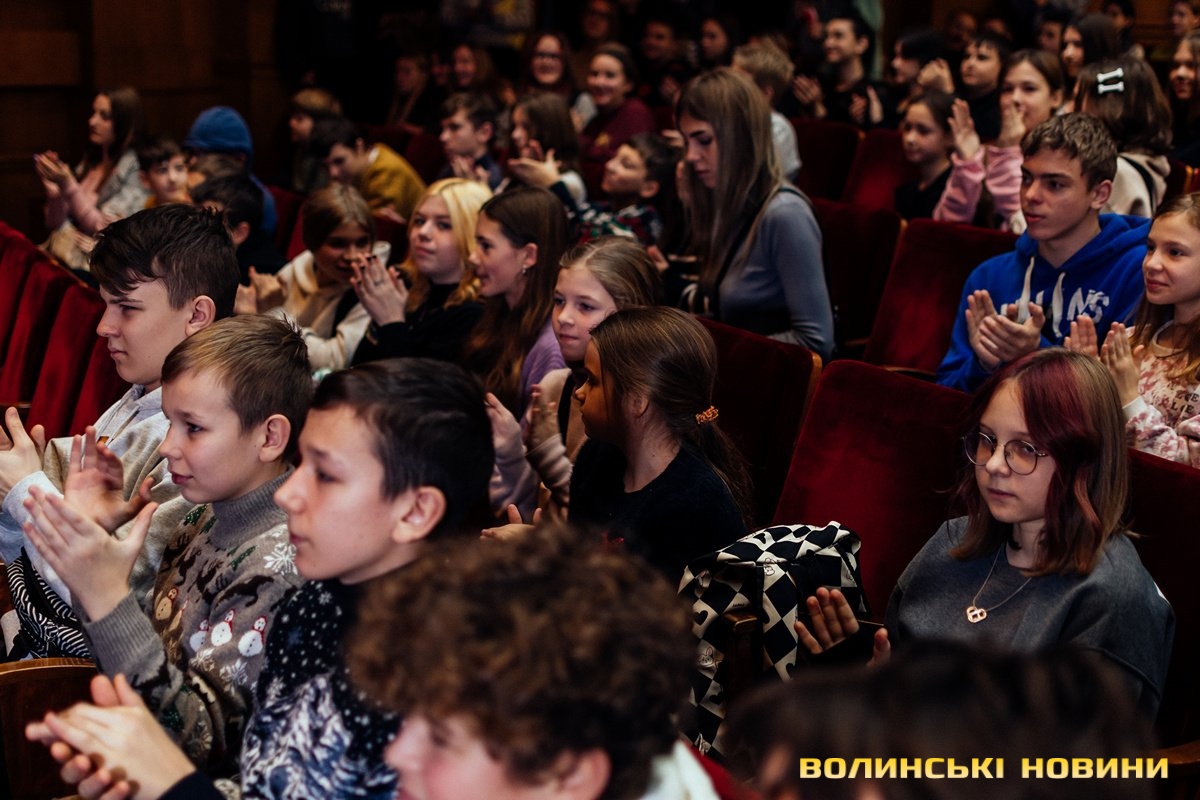 У Волинському облмуздрамтеатрі зібралося більш як 400 учнів луцьких шкіл. Аби подарувати гарний настрій дітям, чиї батьки нині боронять Україну, Фонд Ігоря Палиці «Тільки разом» приготував різдвяно-новорічну програму та солодкі подарунки.