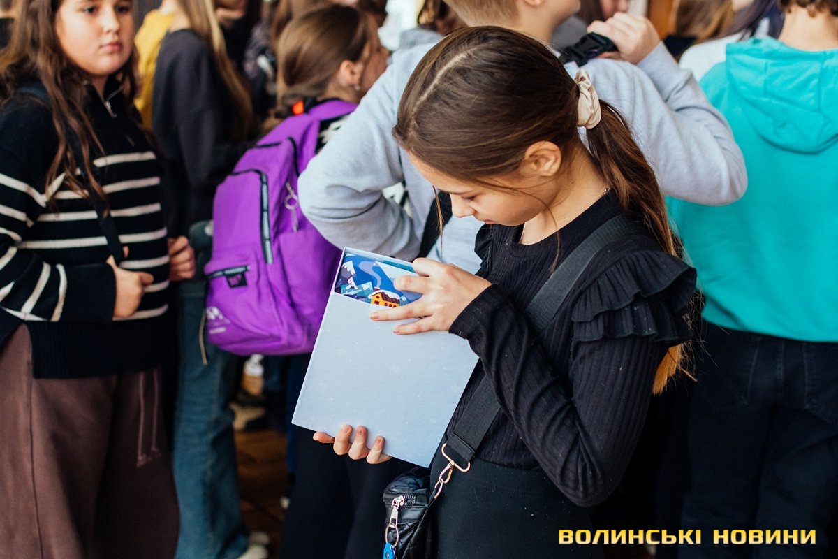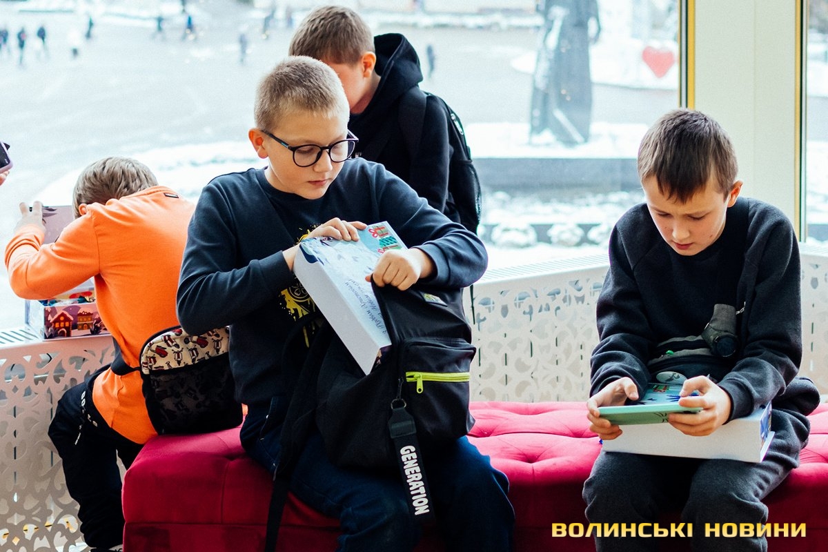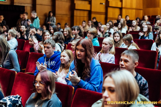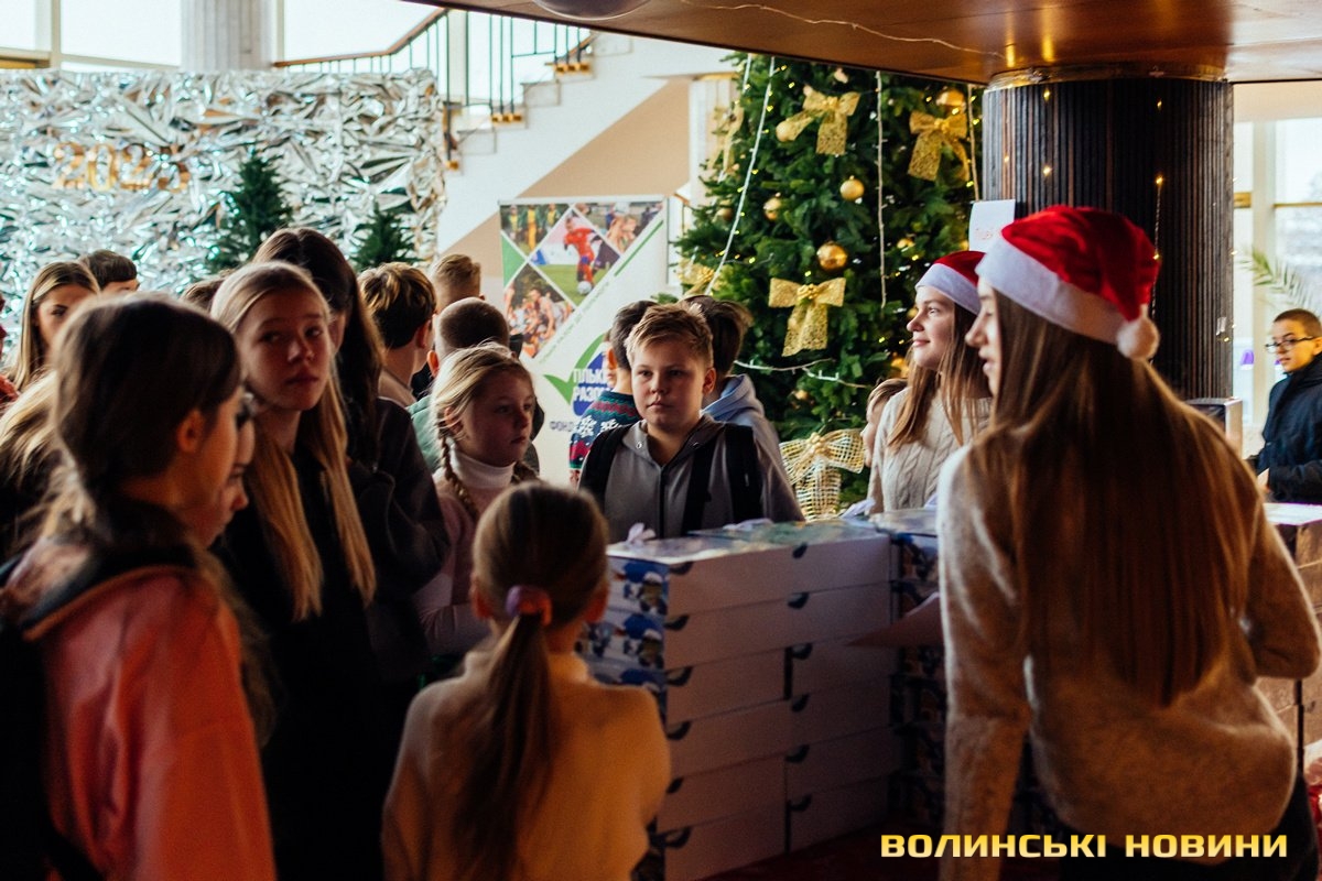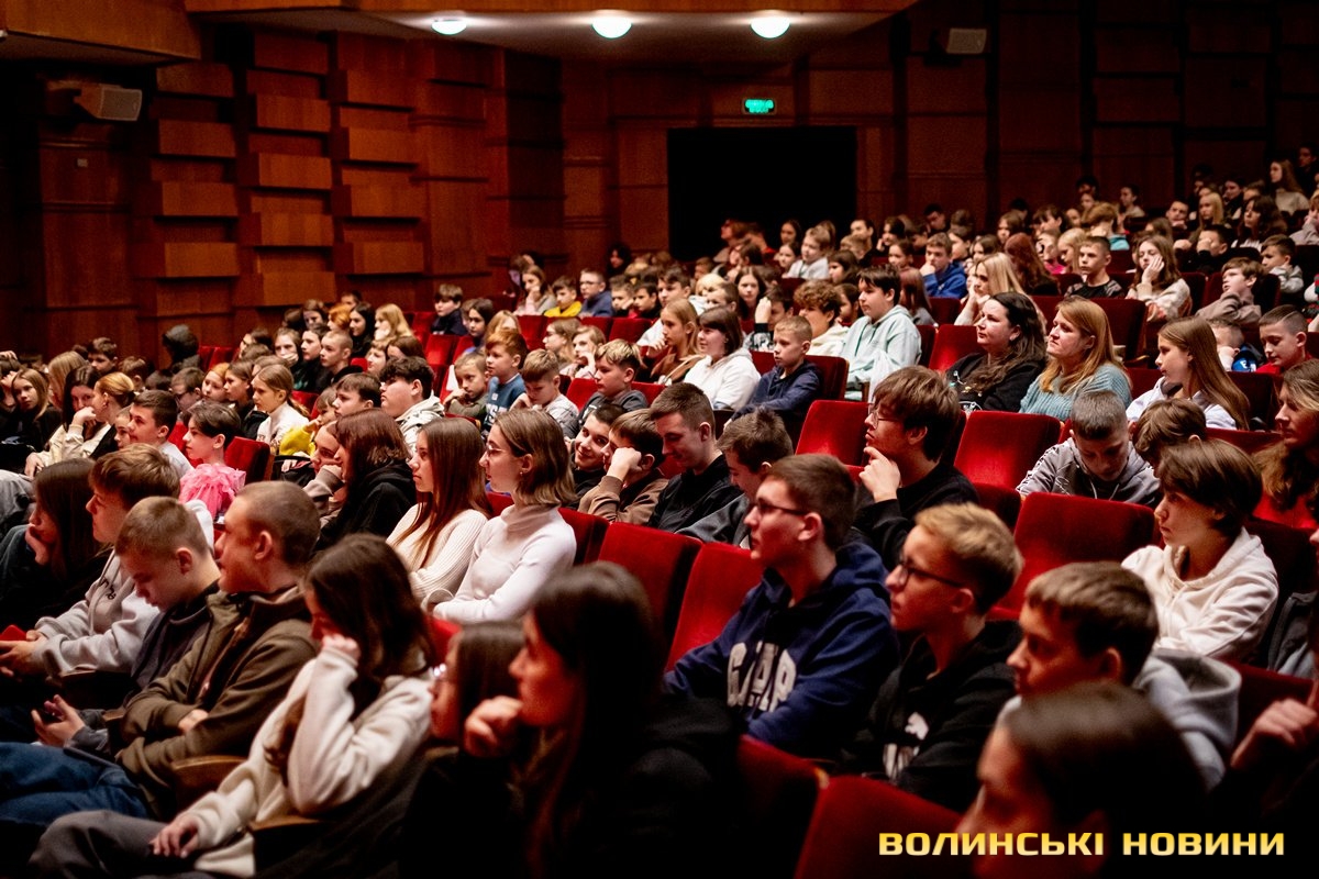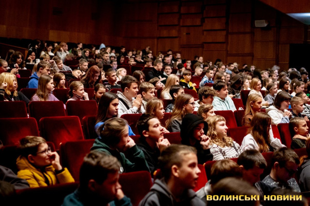 У Волинському облмуздрамтеатрі зібралося більш як 400 учнів луцьких шкіл. Аби подарувати гарний настрій дітям, чиї батьки нині боронять Україну, Фонд Ігоря Палиці «Тільки разом» приготував різдвяно-новорічну програму та солодкі подарунки.