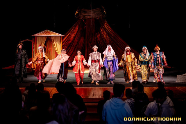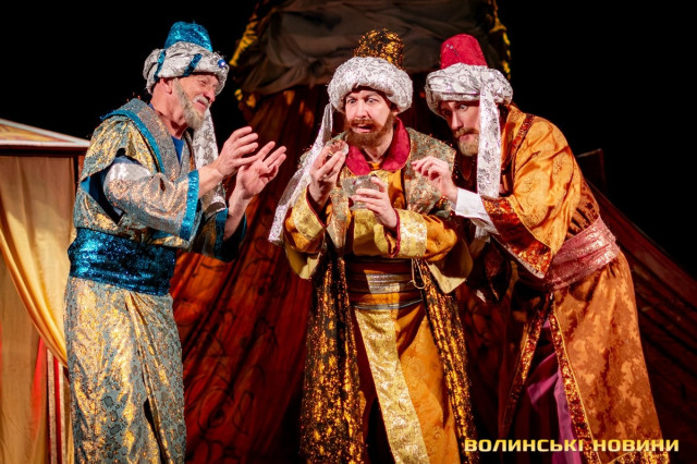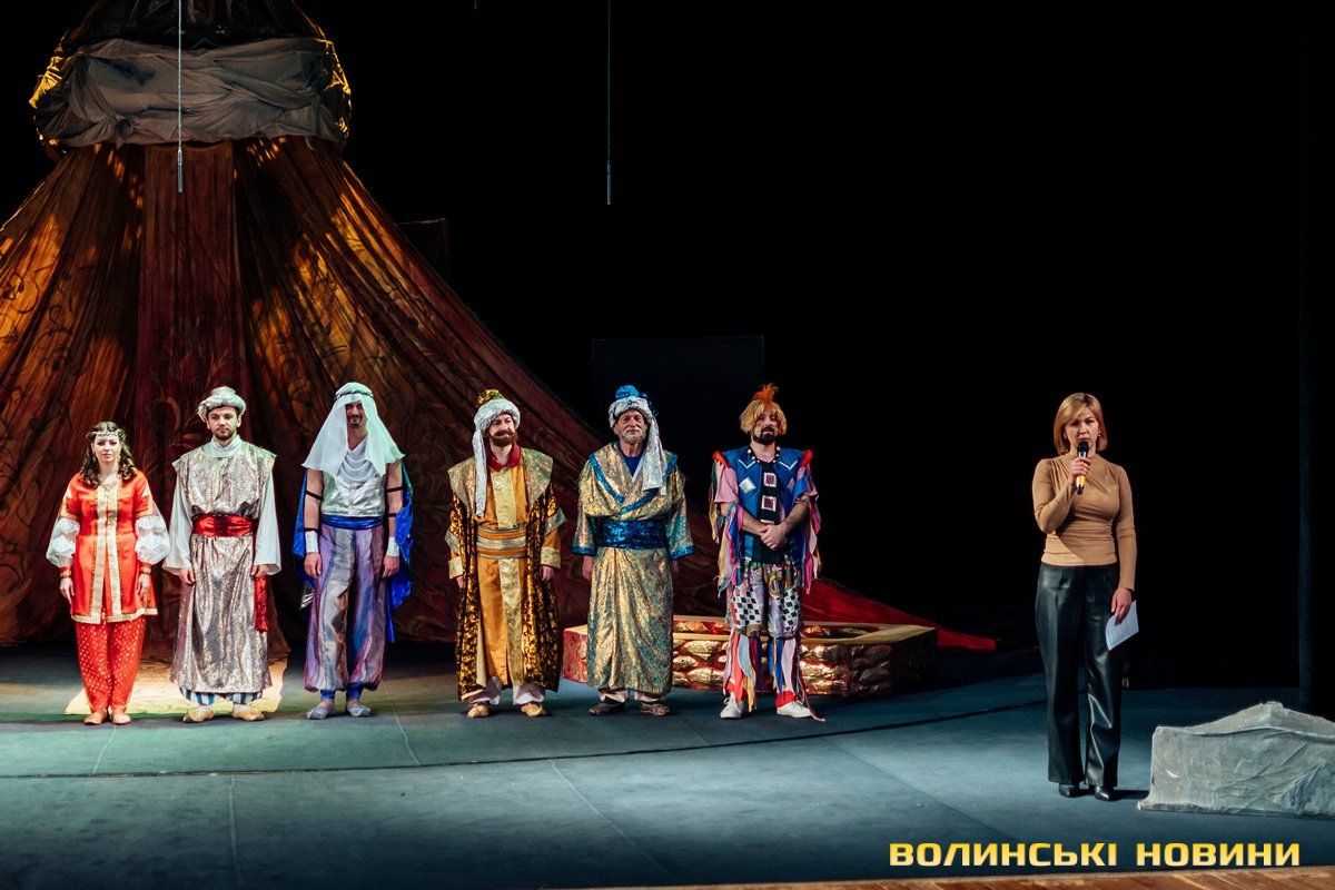 Вистава розпочалася із вітальної мініатюри, головними персонажами якої були Кізонька та Святий Миколай. Небесний покровитель Луцька закликав школярів до спільного прохання Бога про настання миру, здоров’я та благополуччя усім нам.Після цього на сцені розгорнулися екзотичні краєвиди Далекого Сходу з яскравими та колоритними персонажами. Історія про Аладдіна, якого хоче обманути злий Чаклун, як відомо, закінчується щасливо. У закоханих справи йдуть чудово, а зло – покаране. Усміхнені діти жваво обговорюють побачене.Восьмикласник Назар Ковальчук з четвертої гімназії бадьоро й енергійно розповідає, що вистава цікава, смішна і не нудна, а рік був хорошим, адже виграв кілька турнірів з футболу. Оцінки, правда, не дуже. Тому хлопець каже, що у новому навчальному році хотів би отримувати трохи кращі. Назар розмірковує: таке відчуття, що війни нема, але кожного разу лякають сигнали повітряної тривоги, під час яких завжди йдуть у сховище.Десятикласниця Марта Литвин трішки серйозніша. Каже, що вистава їй сподобалася, хоча не знала, яку саме буде переглядати. Настрій так собі, ділиться думками дівчинка, адже багато контрольних, важко вчитися. Мріє, аби новий рік був без війни.Справді, як справедливо підкреслила Катерина Шкльода, звертаючись до гостей свята, нині є герої, яким необхідно дякувати щодень.«Дякуємо акторам за гарний виступ і, звісно, найгучніших оплесків заслуговують ті, без кого, без чийого захисту ми не змогли б сьогодні проводити виставу, організовувати святкові заходи, відвідувати школу. Давайте щиро подякуємо нашим захисникам і захисницям. Ми – команда Фонду Ігоря Палиця «Тільки разом», вітаємо вас з прийдешніми різдвяними й новорічними святами. Бажаємо насамперед миру. Миру у нашій країні, миру у кожній нашій родині, у кожній нашій домівці і миру у кожному вашому серці. Бажаємо міцного здоров'я, благополуччя. Бажаємо здійснення мрій у новому році. І бажаємо, аби Україна нарешті стала вільною. Слава Україні!» – привітала учнів і педагогів Катерина Шкльода.Настає очікувана мить – кожен отримує солідний пакунок із солодощами. У цій гарній ініціативі організаторам допомагають волонтери.Школярки Тетяна Миколайчук і член міського учнівського парламенту Дарина Гладишкевич – одні з тих, хто сьогодні також дарує частинку святкового настрою. Дівчата з гордістю наголошують: вони тут, адже розуміють важливість і користь від справи, яку роблять усі разом. Щодо підсумків минулого і очікувань від прийдешнього року, то тут волонтерки також одностайні: «2024 рік був веселим, але й сповненим випробувань, дуже емоційним. Чекаємо, що новий рік буде кращим і, звичайно, переможним для України».Задоволені діти розгортають подарунки і смакують. Особливо приємні такі моменти молодшим школярам. Відповідні й розмови: про те, якими були солодощі минулого року. Та про те, що пакунки тоді були іншої форми. Аж ось і про виставу мова зайшла: хлопці обговорюють бажання Аладдіна.Арсен Марчук ходить у сьомий клас. Одразу каже: вистава недитяча, але класна, йому дуже сподобалася.«Зараз настрій хороший, хоча рік закінчується не дуже добре – оцінки в мене так собі. Спортивні досягнення нормальні. Ходжу на бойовий гопак, то там маю певні успіхи. Подобається займатися. У новому році хочу, щоб в Україні закінчилася війна. Це – для нас всіх, а для себе – отрим