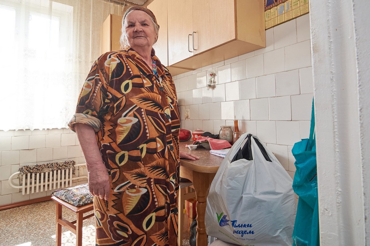 «43 роки пропрацювала на підприємстві, а тепер із пенсією у дві з невеликим тисячі як прожити? Я сама-самісінька, вдова. Не можу звести кінці з кінцями. Постійно щось в аптеці треба. Хліб йду купувати найдешевший, все найнеобхідніше купую по акції. Інакше не стягну», – ділиться Тетяна Степанівна.«П’ять разів мене різали. Імунітету зовсім нема. Цілий місяць уже маю ГРВІ, не можу ніяк вилікуватися, погано почуваюся. Правда, підозрілих симптомів немає, але все одно переживаю через той коронавірус, – продовжує жінка. – Зі всіх сторін наголошують, аби старші люди не виходили з хати. А хто замість мене піде в аптеку, в магазин? Хоч хліба, та мушу купити. Бо без хліба не можу. Один брат загинув, інший теж уже помер. Маю племінників, та у них свої проблеми. Не буду ж я у них просити, і так допомагали грішми на операцію. Благо, зір трохи покращився після того, бо вже зовсім нічого не бачила. Тому й звернулася в оперативний штаб, як дізналася, що можна отримати хоч таку поміч».