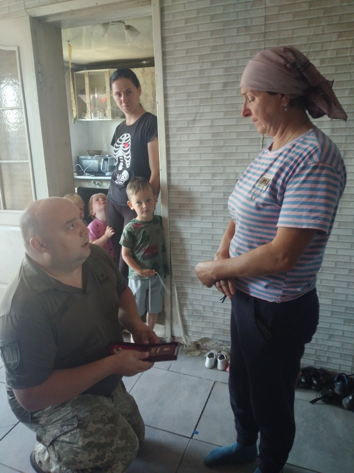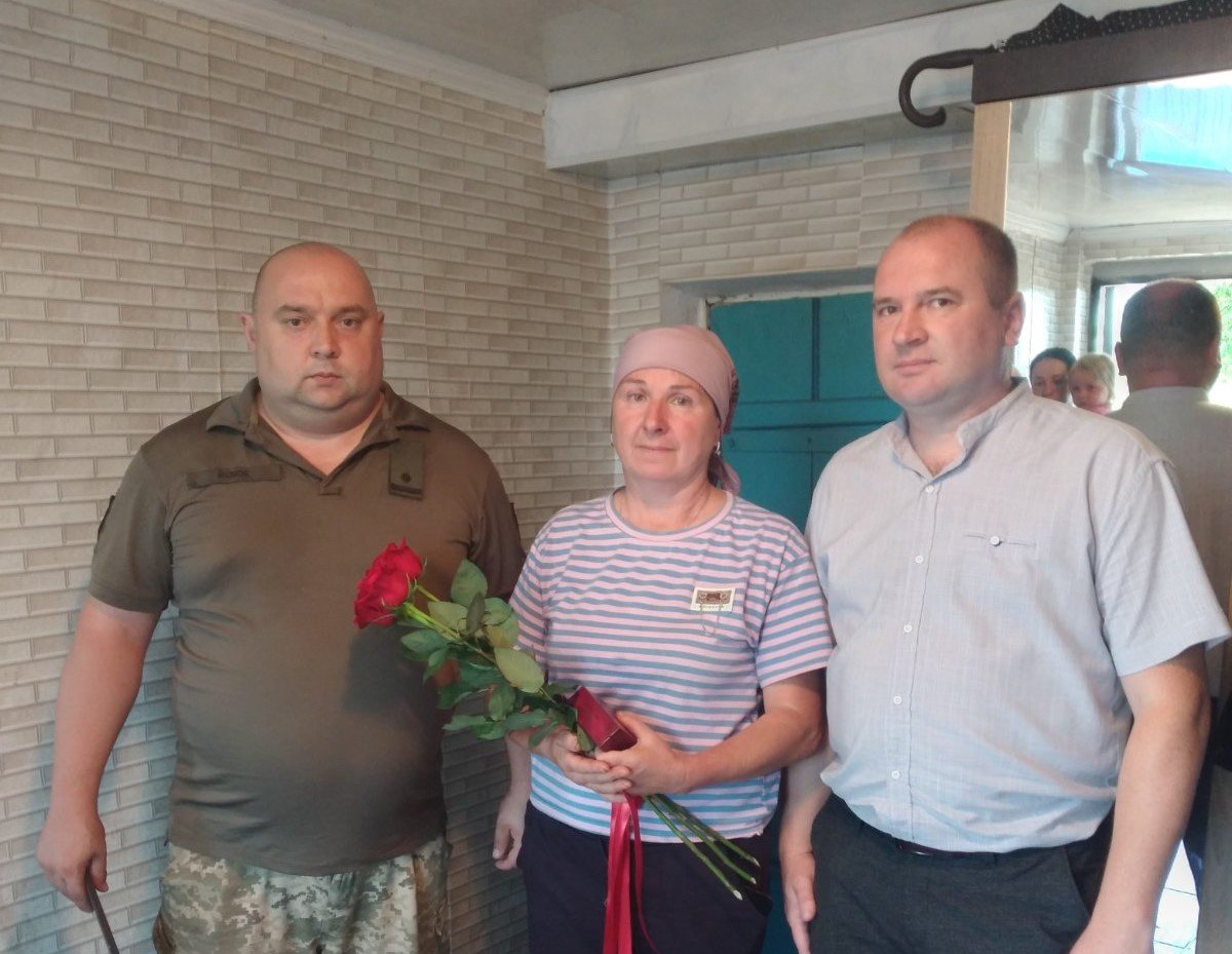 Секретар Маневицької селищної ради Володимир Черчик та заступник начальника першого відділення Камінь-Каширського районного територіального центру комплектації та соціальної підтримки, майор Юрій Мізюк подякували за відвагу і сміливість українського захисника та вручили державну відзнаку дружині Наталії Володимирівні.