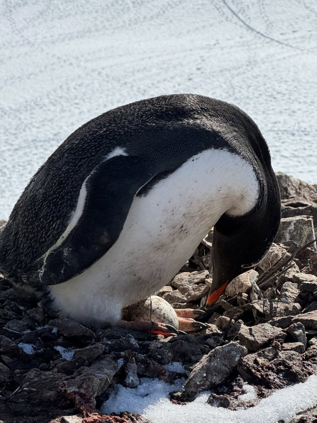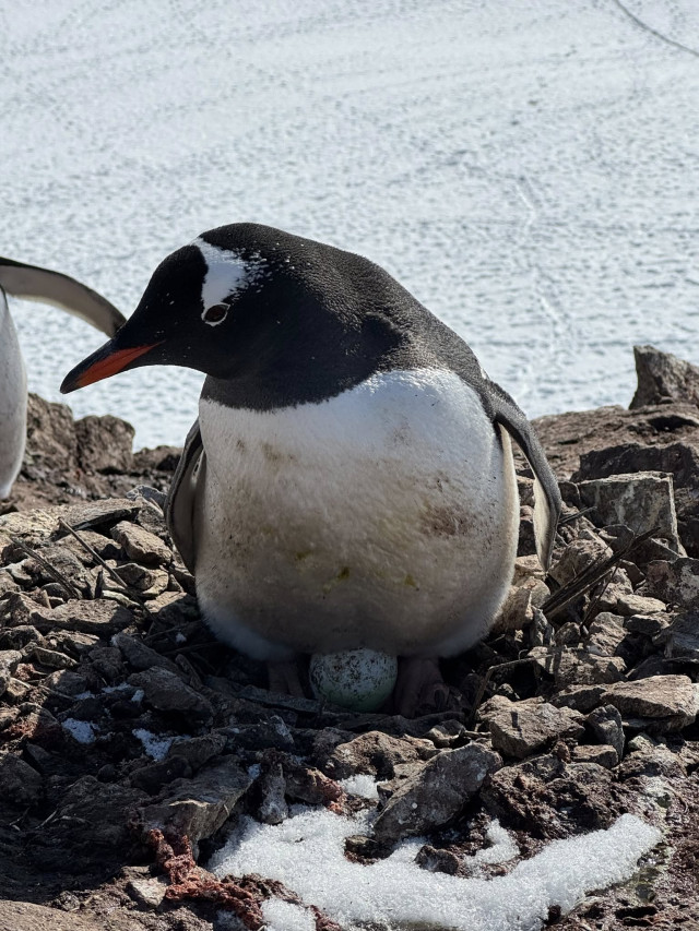 Субантарктичні пінгвіни поблизу української станції «Академік Вернадський» висадили перше яйце цього шлюбного сезону. Його виявили на скелі біля лабораторії геофізиків.