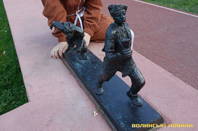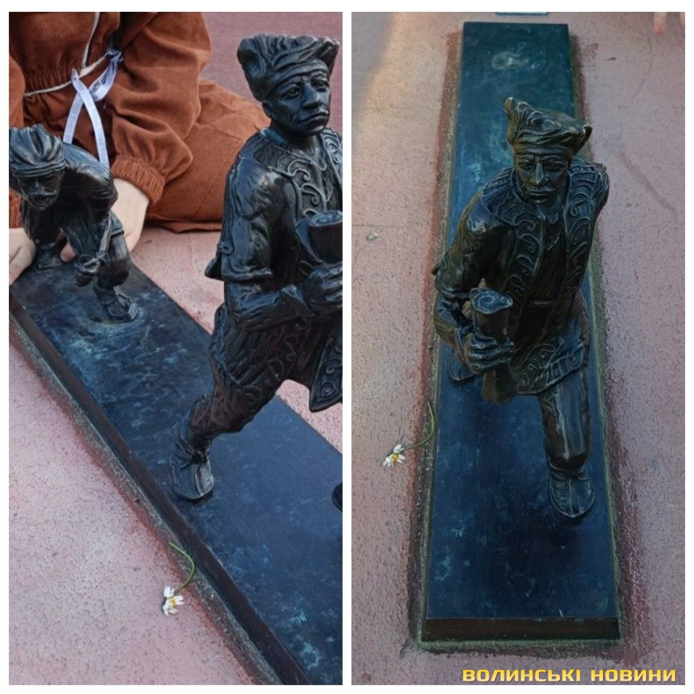 Вдруге за три місяці: у луцькому парку пошкодили скульптуру кликуна. Фото