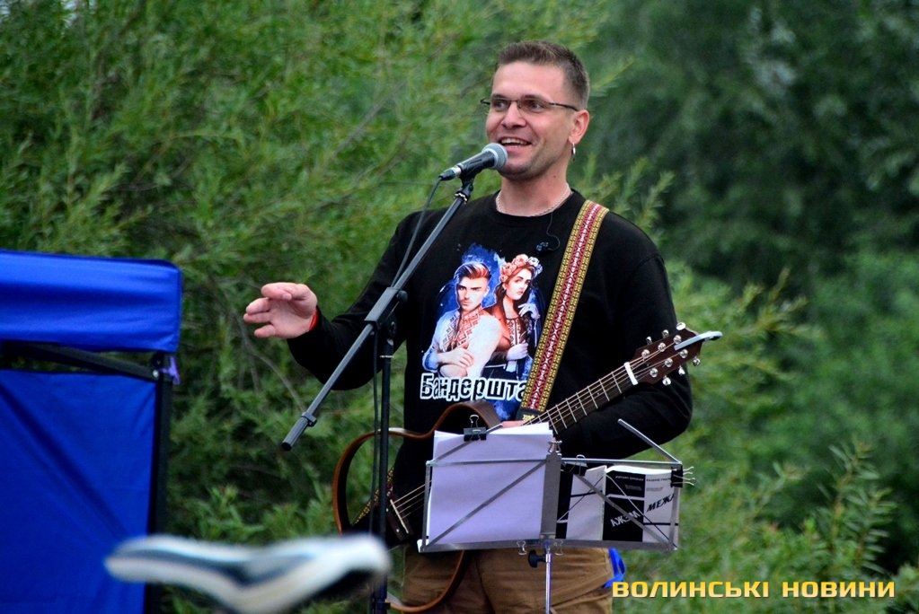 «Так-от з тією гітарою Володимир об’їздив увесь схід, починаючи від Майдану до Слов’янська, Станиці Луганської і Дебальцевого. А сьогодні він приїхав із нею на «Бандерштат», – зазначила ведуча.