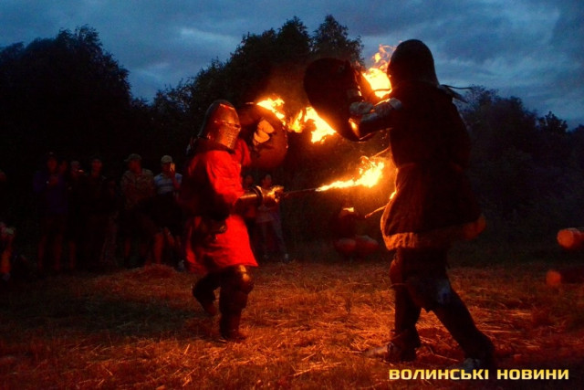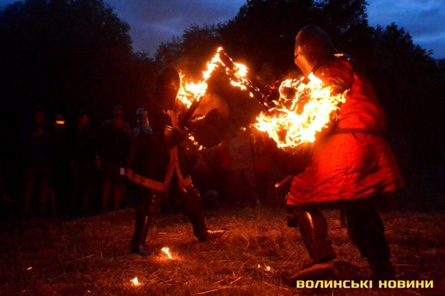 Завершив рокер програму композицією «На небесних конях», яку гості фестивалю слухали стоячи.Після цього видовищний бій на вогняних мечах продемонстрували учасники луцького клубу середньовічного бою «Айна Бера».Читати ще: «Я не знав, що був зв’язковим». Діти ветеранів УПА з Волині поділилися своїми спогадами