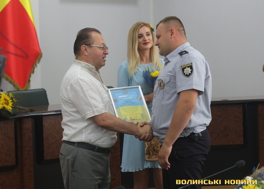 За сумлінну працю, високий професіоналізм, забезпечення законності, правопорядку, свобод та законних інтересів територіальної громади Луцька, а також з нагоди 28-ї річниці Незалежності України подяку голови Волинської облради оголосили колективу департаменту муніципальної варти Луцької міськради (директор – Юлія Сиротинська).Після нагородження для усіх відзначених лучан музичним подарунком став виступ народного артиста України Василя Чепелюка.