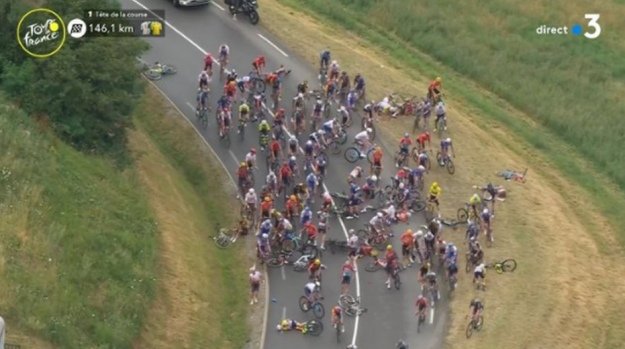 Відомі велоперегони Тур де Франс довелося призупиняти після масштабного падіння спортсменів.