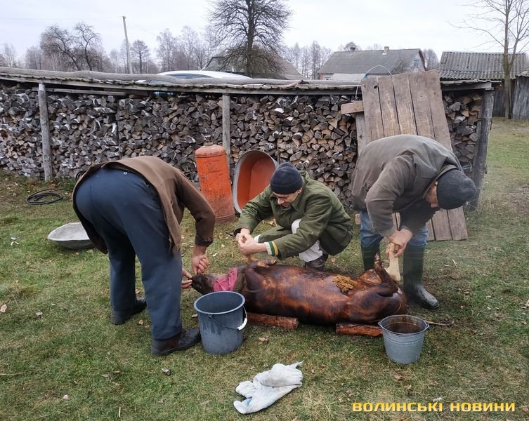 Заколовши, тварину починають смалити. Деколи для цього використовують житню солому. Але в такому випадку потрібно мати набите око, аби точно визначити скільки тієї соломи треба. Забагато даси – припечеш свиню, замало – недосмалиш. Тож частіше все-таки смалять газом, а соломою слегка обкурюють для гарного запаху.