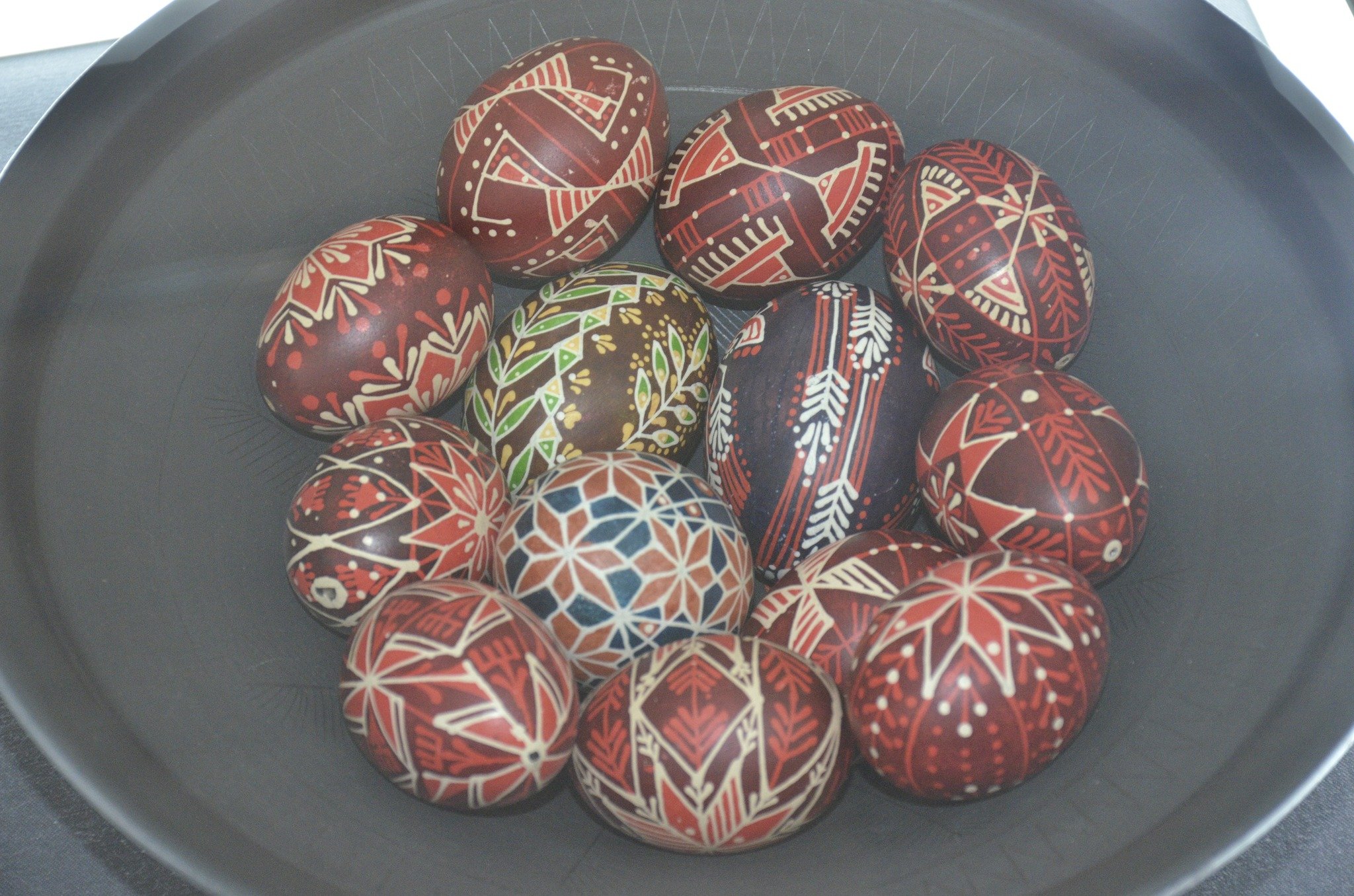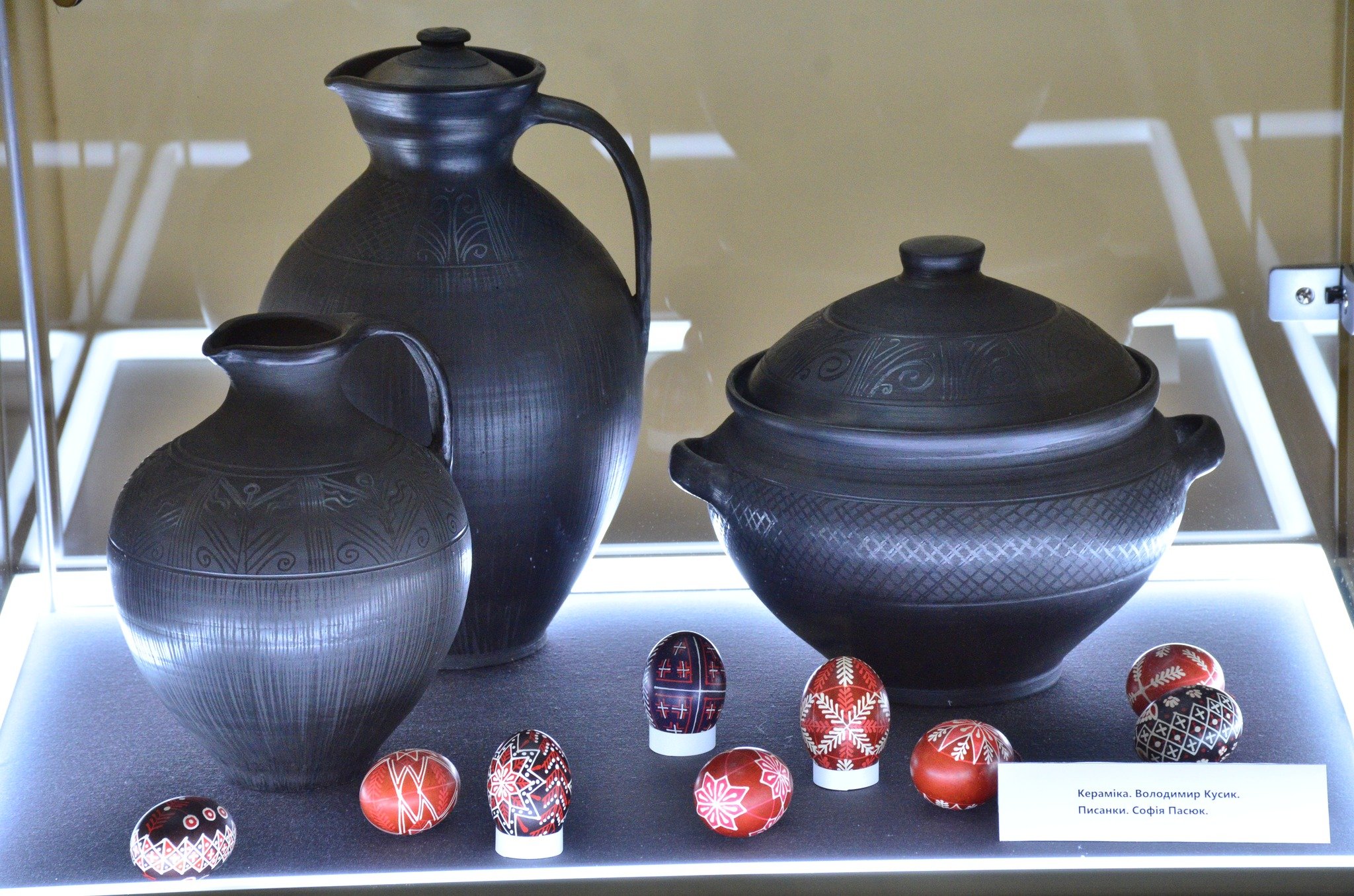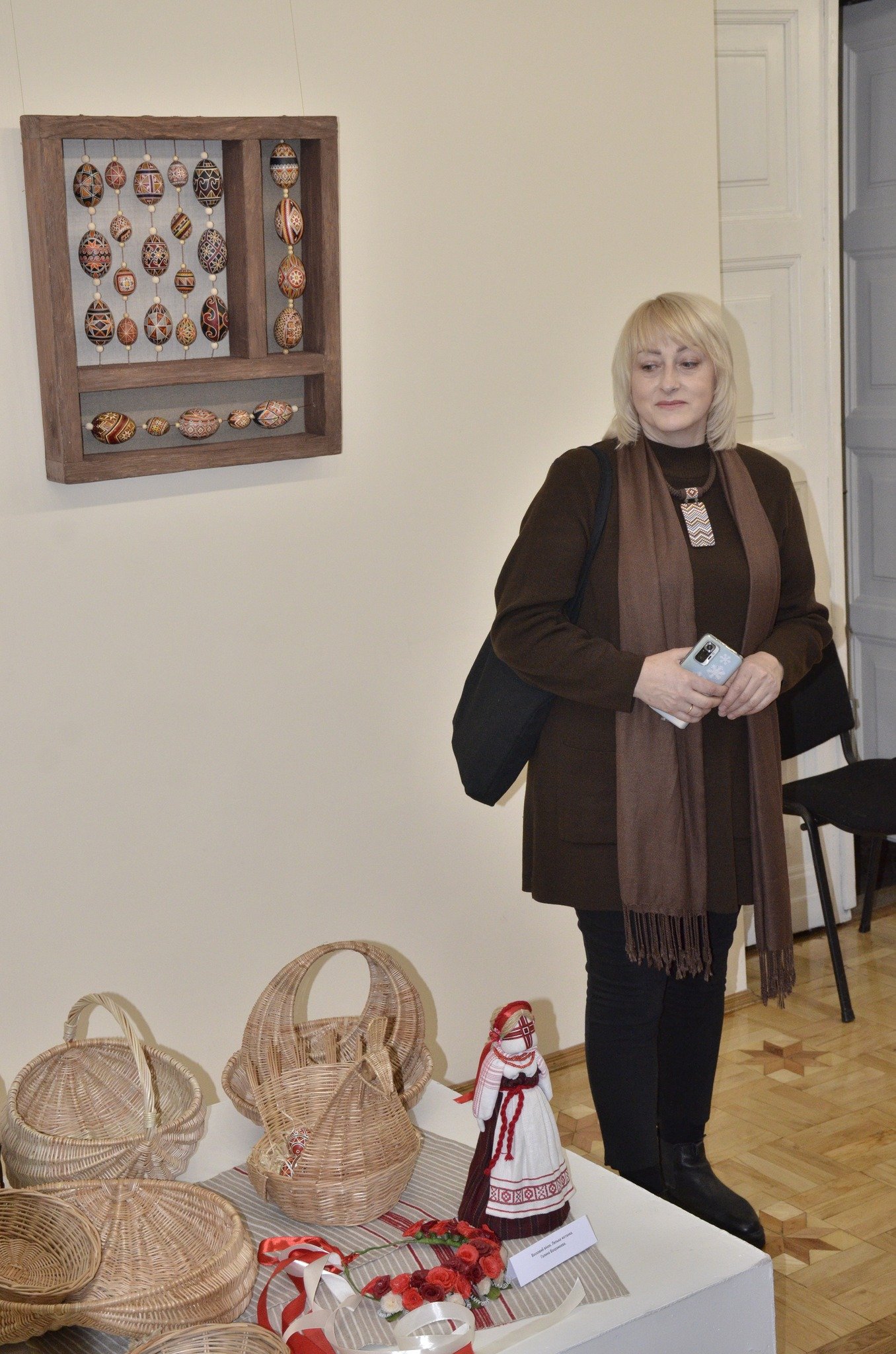 Вражають формою керамічні вироби, делікатні писанки, роботи, плетені з природних матеріалів, художнє різьблення, вишиті й ткані рушники та вироби зі шкіри, декоровані бісероплетінням, восковий віночок.Читати ще: «Важливо оберігати наші традиції»: у Луцьку відкрили проєкт «Великодня майстерня». Фоторепортаж