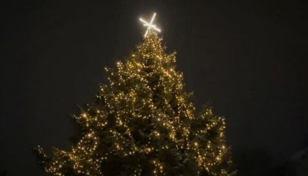 Верхівку головної новорічної ялинки у Львові прикрасили стилізованим протитанковим їжаком.