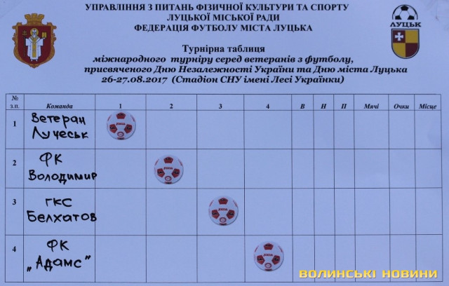 Міжнародний турнір з футболу серед ветеранів відбувається в Луцьку з нагоди Дня Незалежності та Дня міста Луцька.
