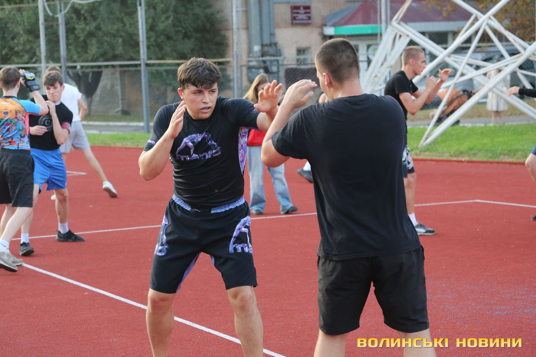 Увечері 15 серпня в Луцьку відбулося відкрите тренування з ММА під керівництвом майстра спорту міжнародного класу, чемпіона України Андрія Гуславського. На спортивному майданчику Волинського національного університету зібралися близько 50 учасників: молодь, спортсмени, військові й ветерани війни.