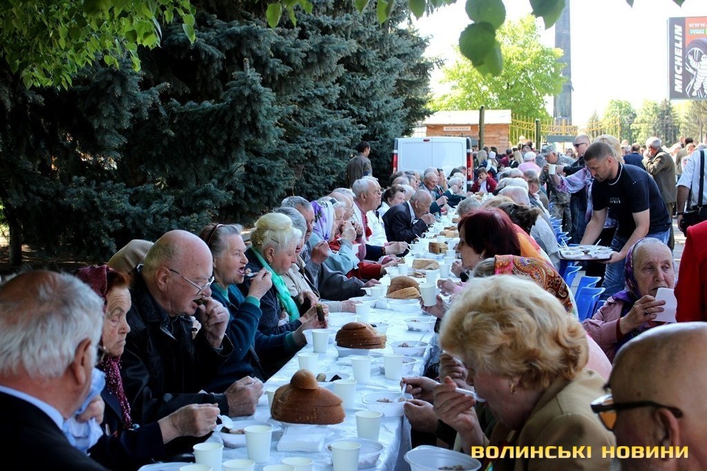 Цьогоріч 160 членів Луцької міської організації ветеранів України отримали від Фонду сертифікат на придбання продуктів у супермаркеті та солодощі. Традицією вже став і святковий обід в одному з луцьких кафе та вітальна програма. Юні актори Творчої студії Наталії Журавльової, артисти вокальної групи «Життєлюби» Волинського Акме-Університету та члени Університету третього віку «Золотий вік» подарували присутнім пісні, які повертали сивочолих ветеранів у далекі фронтові роки. Пісню «День перемоги» ветерани виконали разом з артистами.Участь у святковому заході цього року взяли 64 учасники бойових дій Другої світової війни та голови ветеранських організацій, які безпосередньо опікуються ними. А подарунки тим, кому здоров’я не дозволило прийти на захід, відвезли додому.