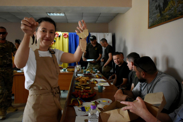 Вітали воїнів яскраві та співочі «Княгининські хорошухи», народний аматорський фольклорний колектив. Ліричні та запальні пісні знайшли відгук у кожного із слухачів. «Бо плач не дав свободи ще нікому, а хто борець – той здобуває світ!»Чорнявий та широкоплечий Андрій із Камінь-Каширського району, з обличчя якого майже не сходить усмішка, вправно керує своїм кріслом колісним і щораз смішливо перепитує, чи всюди можна зі своїм транспортом.
