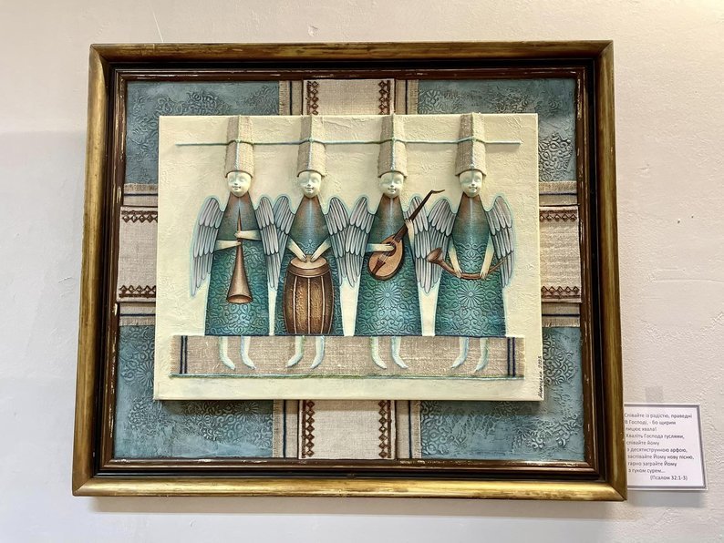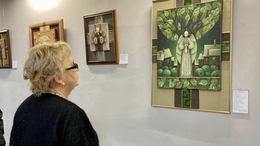 На виставці представлені 23 картини, на яких янголи виконані у різних стилях та техніках, повідомили у міськраді.