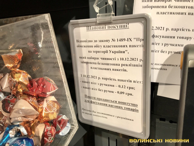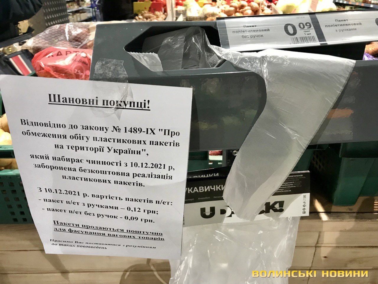 Своєю чергою, працівники магазину розповіли, що одноразові пластикові пакети відтепер тут коштують 10 копійок. Анонсували, що готують цінники й оголошення, які незабаром розмістять біля полиць та розкладок із товарами.
