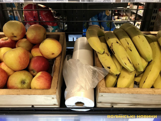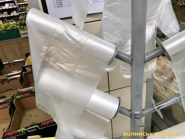Нині ж про платні пакети інформують покупців на касі, а також закликають їх не брати пакетів більше, ніж їм потрібно.Немає жодного повідомлення про те, що за пакети вже потрібно платити, і в маркеті «Сім23» на проспекті Волі. Рулон із пластиковими пакетами тут можна знайти тільки біля кошиків із фруктами.