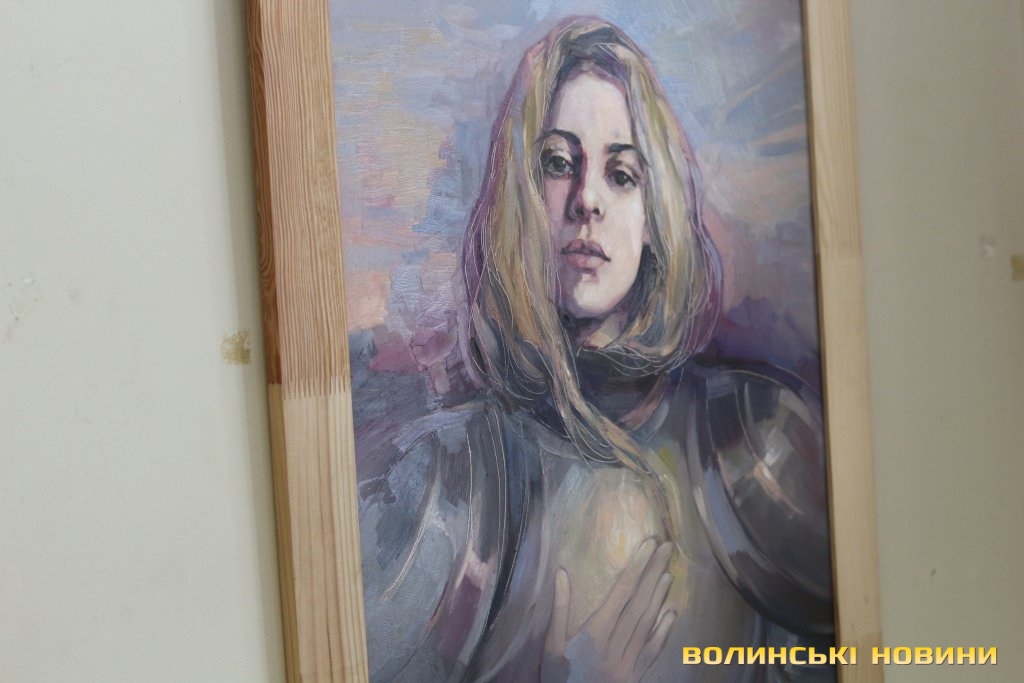 Основною темою виставки є воїни від часів Київської Русі до сучасних воїнів АТО. Роботи здебільшого є плодом фантазії мисткині, деякі створені на основі фото, образів із фільмів тощо. Серед реальних людей на портретах – засновник Запорозької січі Дмитро Вишневецький, сучасники – луцькі реконструктори, зокрема Сергій Ващук. Художниця зізналася, що її найбільше приваблюють сильні характери, а не просто гарні обличчя, очі чи одяг. Надихають її і трагічні події, зокрема початок нових визвольних змагань 2014 року – Майдану та війни на сході країни. Тоді створювалися козацькі портрети. Мисткиня створила портрет князя Дмитра-Любарта на основі гравюри 16-го століття. Він зображений на тлі волинського герба у формі щита, знизу палає вогнище, оскільки багато біди на Волинь приносили набіги татар, а князь був захисником краю від цих набігів. Згори видно ясне небо, що символізує звільнену від загарбників Волинь.