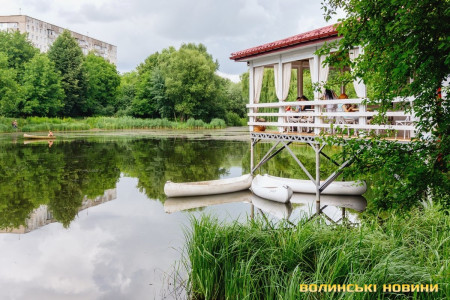 …Ми потрапляємо в парк 900-річчя надвечір. Після дощу тут неймовірно пахне вмитою травою. А птахи щебечуть так – аж вуха закладає. Незабаром до пернатих долучається ще й жаб’ячий хор.Людей і справді багато. Молодь слухає музику. Багато хто вигулює собак. Їздять велосипедисти. Біля річки на лавці мирно бесідують дві поважні пані. Кажуть, нині вже на пенсії, то в парку чи не щодня гуляють.«Як нема змоги виїхати кудись на природу, для нас, міських пенсіонерів, важливо, щоб було куди піти подихати свіжим повітрям. От сюди часто ходимо, – каже пані Євгенія. – Дуже приємно, що влада нарешті звернула увагу й на наш парк, а не тільки на центральний. Тут і прибирали, і хащі чистили. Тепер, бачите, он хлопці на човнах – то вони водорості прибирають, річку чистять. Добре ж! Кажуть, що ще й доріжки зроблять, лавок доставлять».У «Луцькій Венеції» тим часом – справжнісінький аншлаг: зайняті усі столики. Хтось смакує кавою чи чаєм із тістечком (до речі, домашнього виробництва), хтось забіг перечекати дощ разом з чотирилапим улюбленцем (так-так, сюди можна з собакою!). А ось трохи далі від галасливої компанії підлітків молода мама заколисує малюка у візочку, потягуючи теплий обліпиховий чай.Особливого шарму цьому креативному простору додає легка музика, а ще – відчуття свободи від того, що ти не схований від довколишньої краси за стінами, що можеш просто опертися на перила й досхочу милуватися довколишніми пейзажами. Що ми і робимо.Тим часом до нас підходить організатор «Луцької Венеції». Леонід, як і його однофамілець із роману Олеся Гончара «Собор» Микола Баглай, – щирий, відкритий, закоханий у місто, в якому живе. І вірить у людей та їхню доброту.