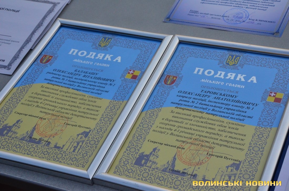 Посадовець передав вітання від депутатів міськради і виконувача повноважень мера міста Григорія Пустовіта, а також вручив копам подяки.Із вітальними словами виступили теж керівник Луцького відділу поліції Олег Кічук, керівник управління Служби безпеки України у Волинській області, полковник Павло Данюков, голова Луцького міськрайонного суду Анатолій Пахолюк, очільник Луцької місцевої прокуратури Василь Корнесюк, керівник управління поліції охорони у Волинській області Ярослав Косинець і командир військової частини 1141 Західного територіального управління Національної гвардії України, підполковник Василь Гуртовський.Ще одним приводом для урочистості стало присвоєння чергових спеціальних звань поліції більше 50 патрульним.