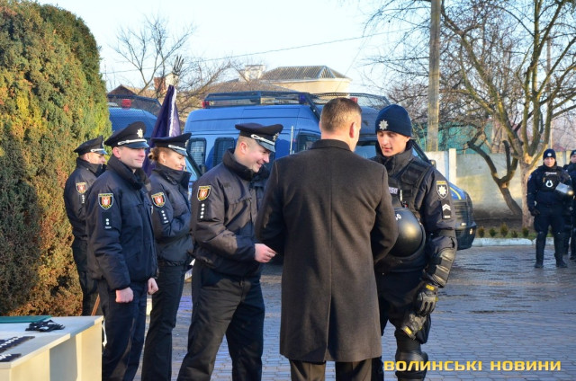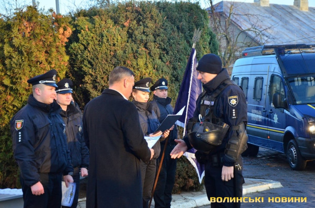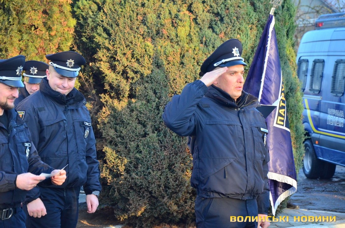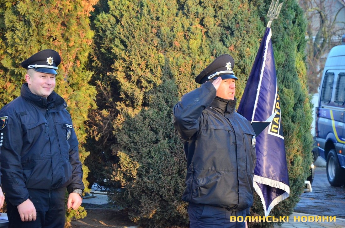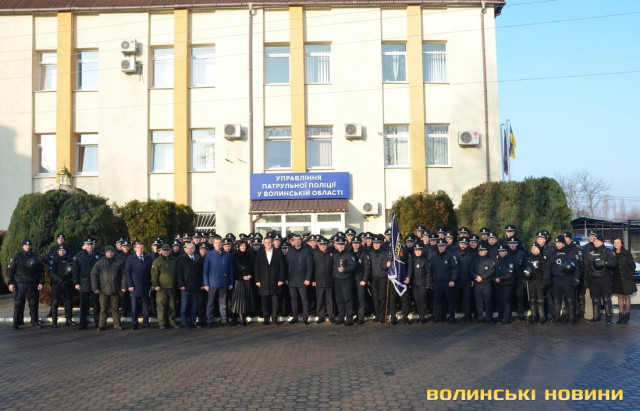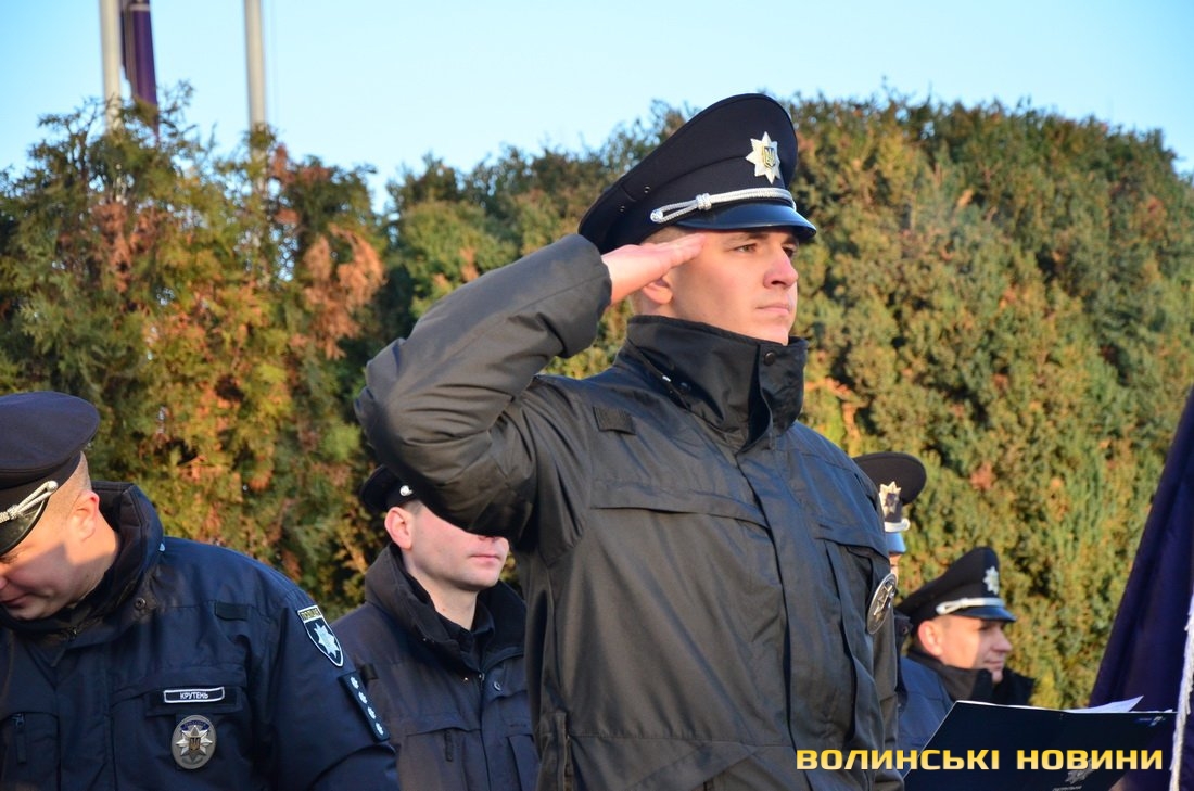 Ще до приїзду гостей на офіційний захід керівник управління патрульної поліції у Волинській області, капітан поліції Андрій Крутень звернувся до своїх підлеглих зі словами: «За 10 хвилин будемо розпочинати. Чекаємо гостей. Але пам’ятайте, що це наше свято, а гості приїдуть, щоб привітати нас».Насамперед із вітальним словом до поліцейських звернувся керівник головного управління Національної поліції у Волинській області, генерал поліції третього рангу Петро Шпига.