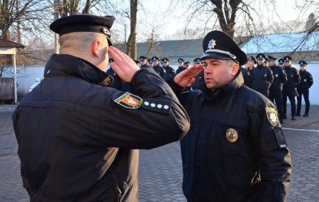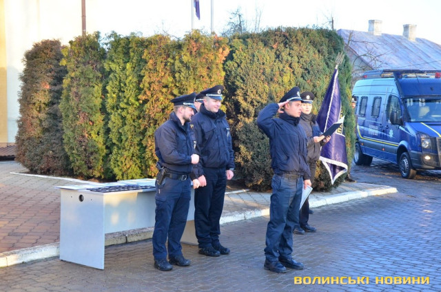 Із цієї нагоди патрульні зібралися на урочисте шикування. Аби привітати копів, вручити їм подяки та відзнаки, до управління патрульної поліції прибули теж представники обласної та місцевої влади, СБУ, прокуратури, суду, ДСНС тощо.