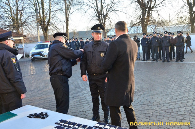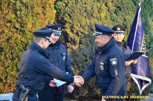 «Ви спільно несете патрулювання, розкриваєте злочини, гарантуєте безпеку і спокій наших громадян, мешканців Волинської області», – наголосив генерал.Із нагоди свята, а також за відмінну роботу, зокрема при затриманні п’яних осіб, які збили на смерть на пішохідному переході жінку в Луцьку та намагалися покинути місце аварії, Петро Шпига вручив трьом патрульним подяки.