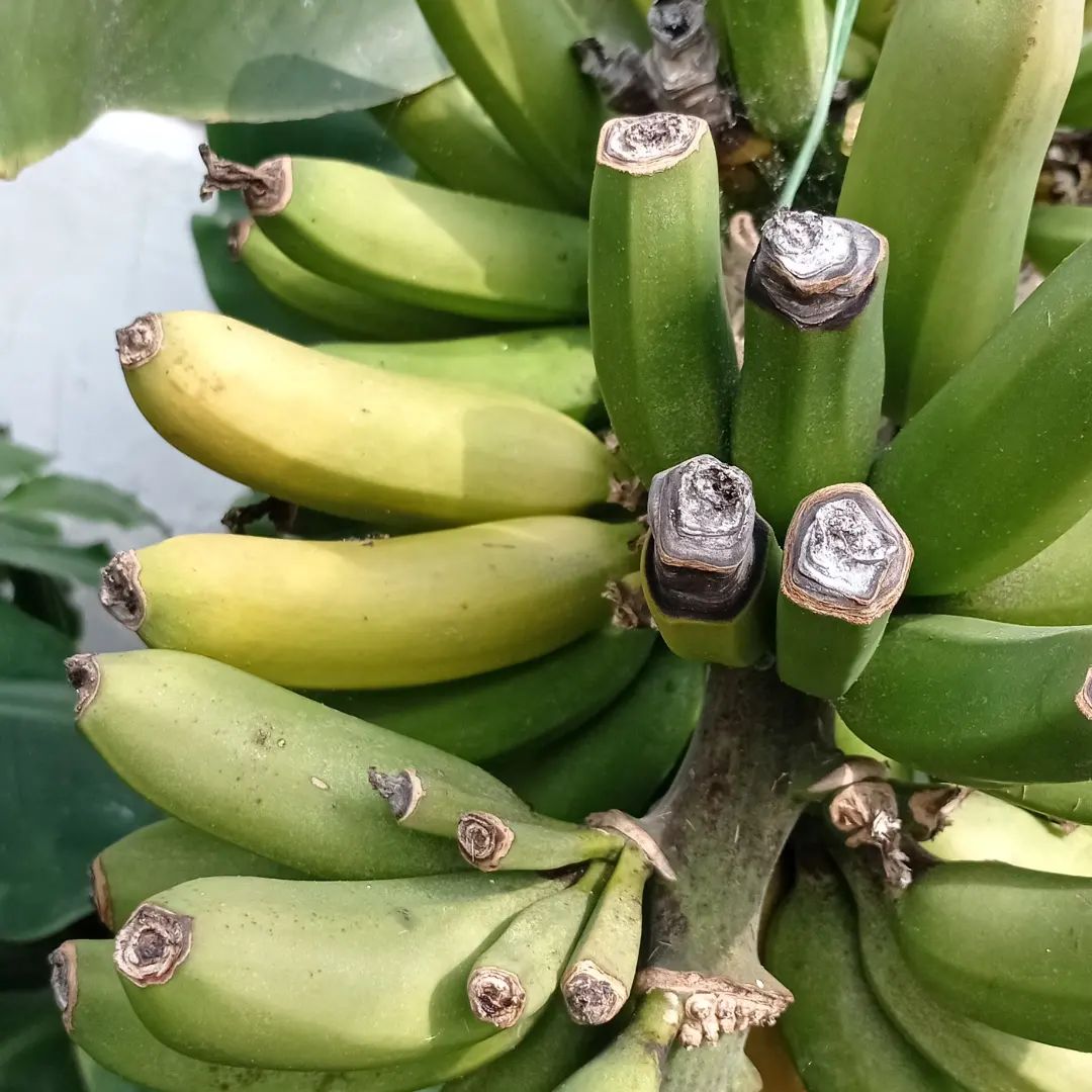 Банани на одному дереві достигають неодночасно. Дозрілі плоди не мають яскравого жовтого кольору. Вони зелено-жовті.