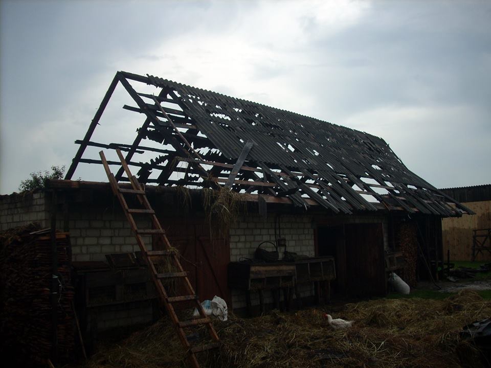 Причина загорань – удар блискавки. Окрім того, по цих же населених пунктах від сильних поривів вітру лежать повалені дерева та паркани.
