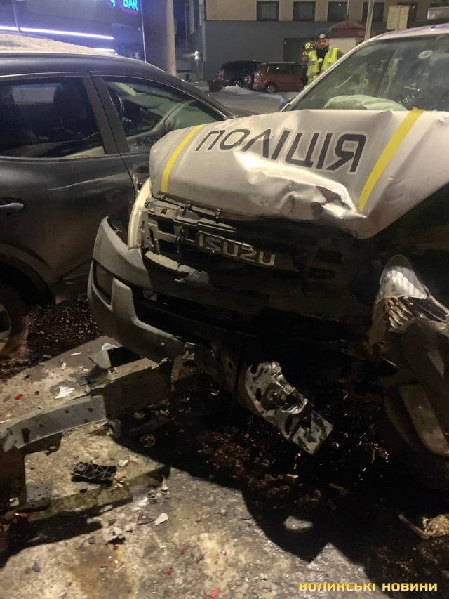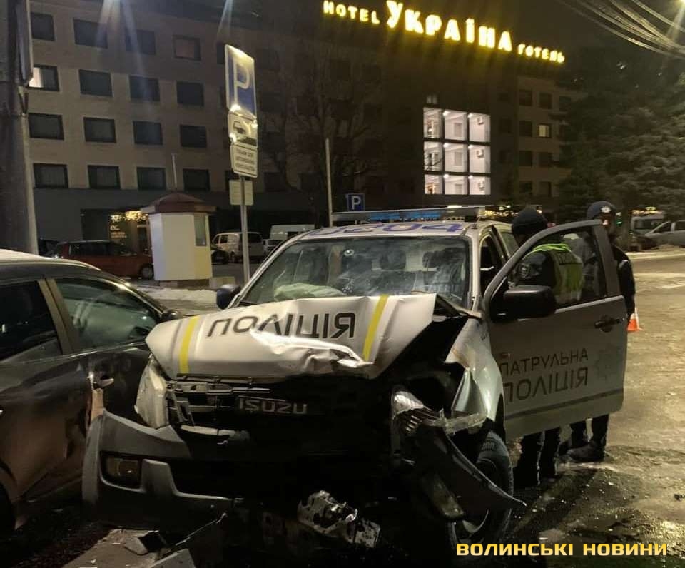 Від удару машину розвернуло і відкинуло у стовп: деталі ДТП у Луцьку за участю патрульних. Відео