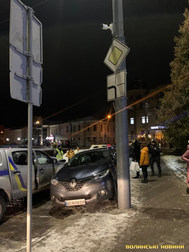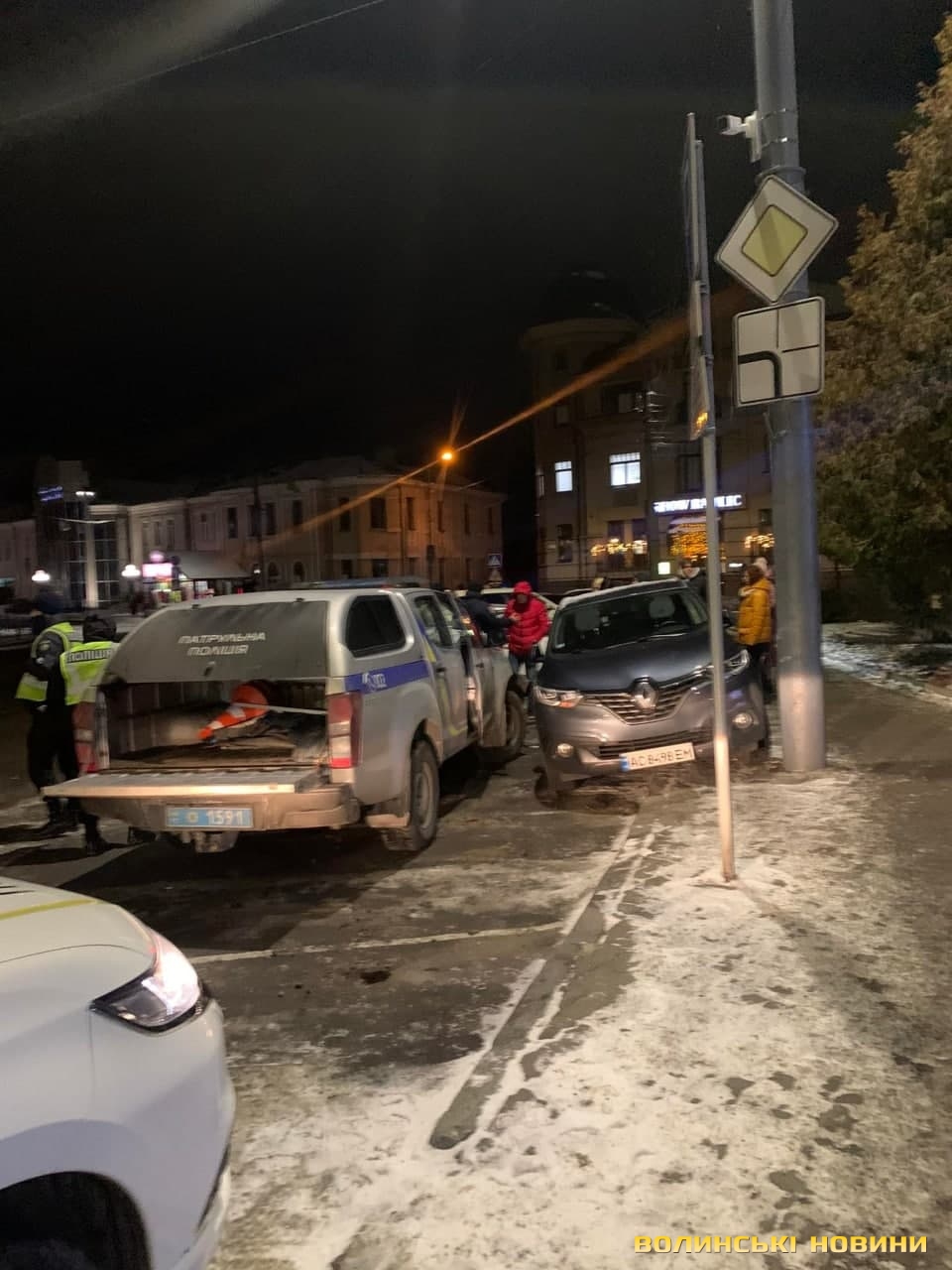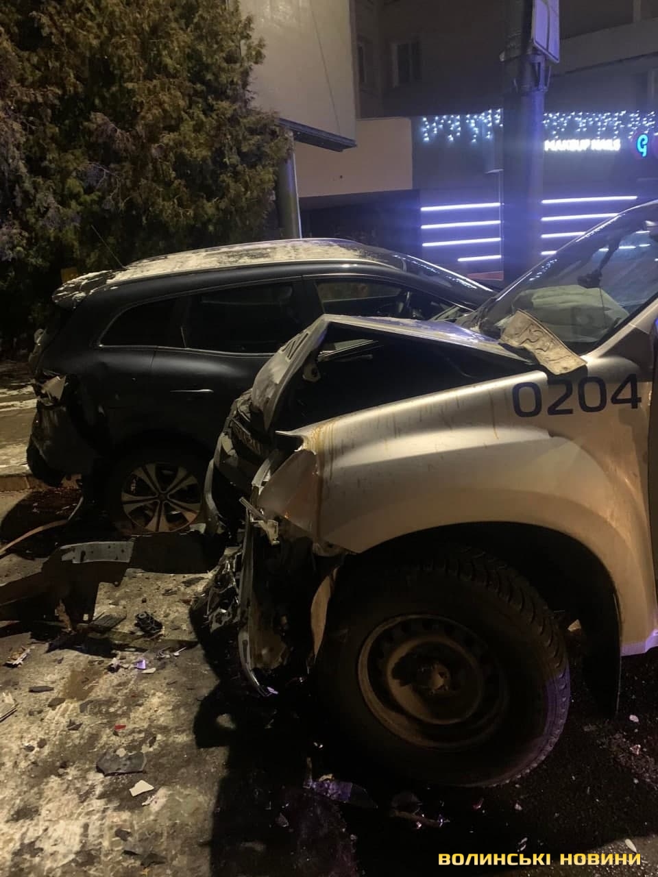 Як повідомила у коментарі Інформаційному агентству Волинські Новини власниця Renault, у яку влетіло авто патрульних, автомобіль стояв припаркований за усіма правилами. Проте сила удару настільки була велика, що автівку розвернуло і вона врізалась у стовп.