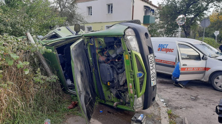 Від удару легковика відкинуло в сторону і він перекинувся. На місці працює поліція, подробиці – згодом.