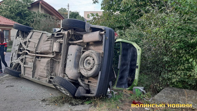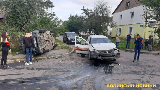 Через ненадання переваги у русі в Луцьку зіткнулось два автомобілі, в результаті чого один з них перекинувся.