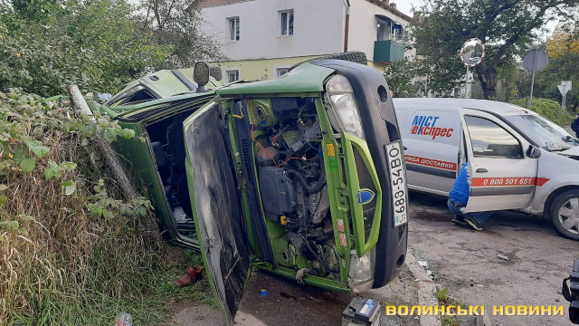 Від удару перекинувся легковик: у Луцьку на перехресті – ДТП за участю авто кур’єрської служби. Фото