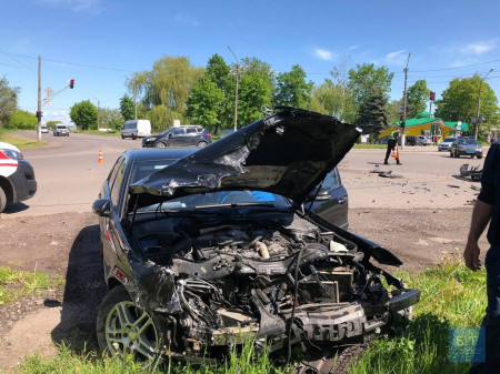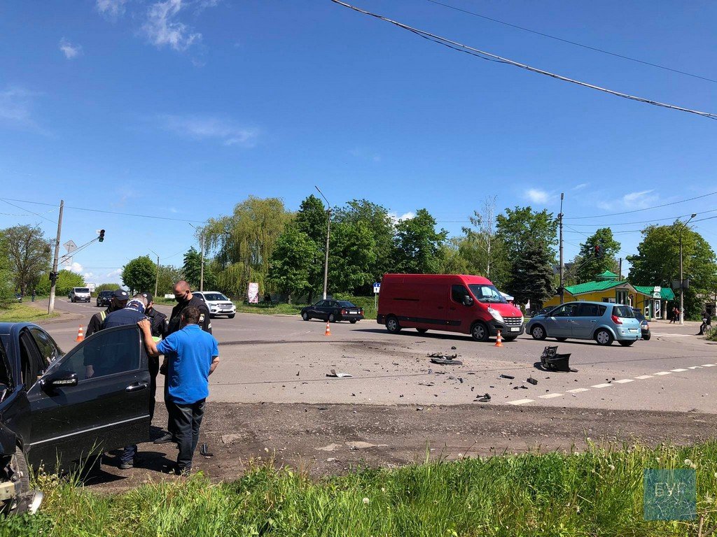 Автопригода сталася 23 травня на перехресті вулиць Шахтарської та траси Р-15. Зіткнулися Volkswagen та Mercedes. Від удару автівки розвернуло і Volkswagen в’їхав у паркан.