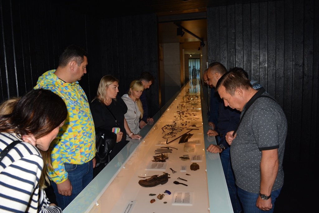 Наша екскурсія розпочалася із залізничної платформи, на яку люди прибували цілими сім’ями, навіть не здогадуючись, що у них – квитки в один кінець.Далі був огляд експозиції. На 20 дошках представлено історію та умови життя в таборі, а також зібрано речі, що їх вдалося відшукати під час розкопок: особисті речі ув’язнених, їхніх катів, шматки колючого дроту, яким була огороджена вся територія табору (а щоб ніхто не здогадався, що тут табір смерті, колючий дріт маскували гіллям та стовбурами дерев).На одному стелажі під склом – залізний гак. Не одного з нас вхопили дрижаки, коли прочитали на табличці, що це знаряддя для витягання тіл з газової камери…