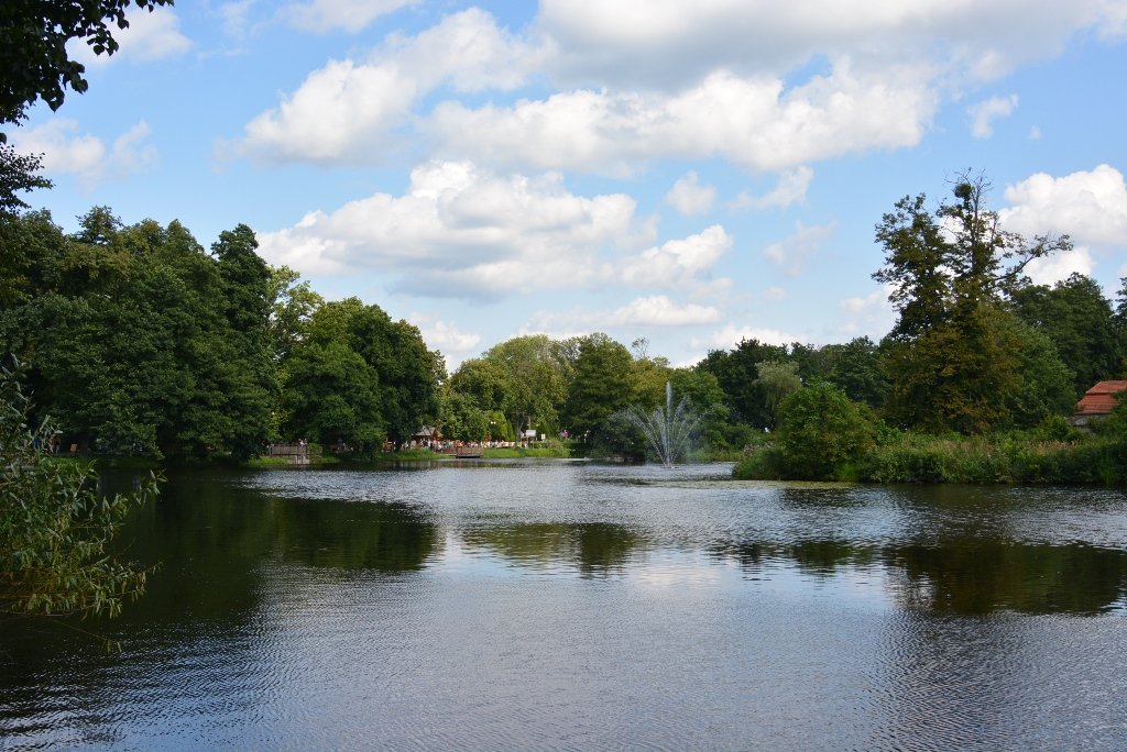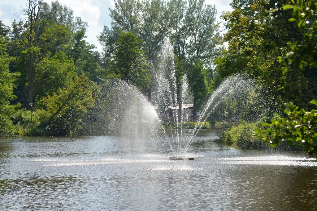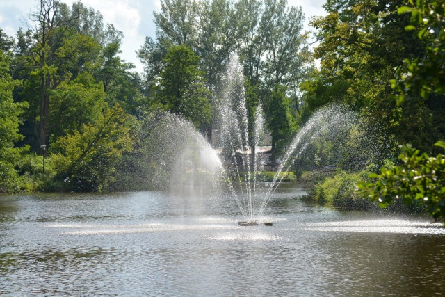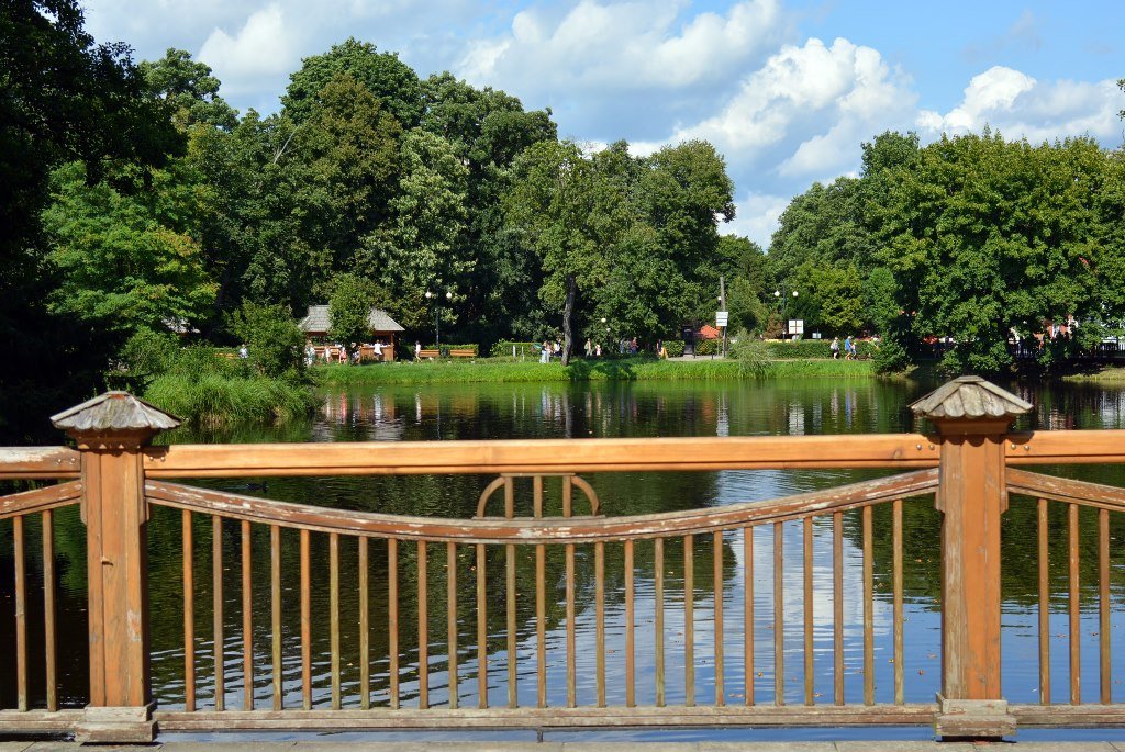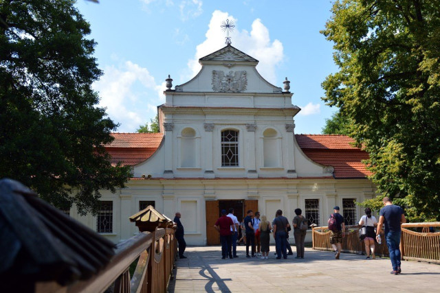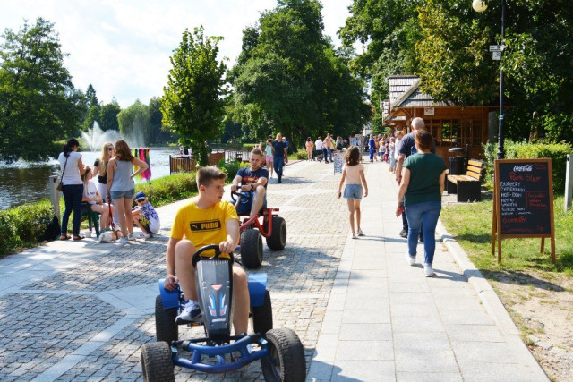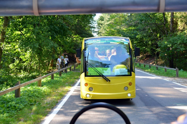 Тут можна з насолодою прогулятися повз водойму з фонтаном посередині, випити кави чи пива, яке варять на місцевій броварні, оглянути Костел на Острові. Або ж усамітнитися під розлогими вербами.Хоча, варто зауважити, тут аж ніяк не порожньо. Знову ж таки – дуже багато велосипедистів. До речі, транспорт тут можна винайняти. Ну а якщо самому ліньки крутити педалі, то можна сісти в екскурсійний електромобіль та гайнути парком з вітерцем.Зауважу, що не тільки гіди досконало володіють просто масивом інформації про кожен туристичний об’єкт, а й будь-хто з працівників парку. Поки ми їхали електромобілем до поселення дикого польського коника – нащадка тарпана, наш водій пан Яцек не перестаючи розповідав про флору і фауну Розточчя, дивував цікавими історичними фактами.