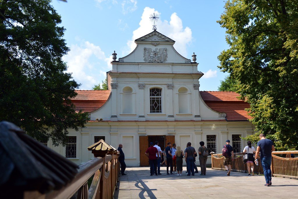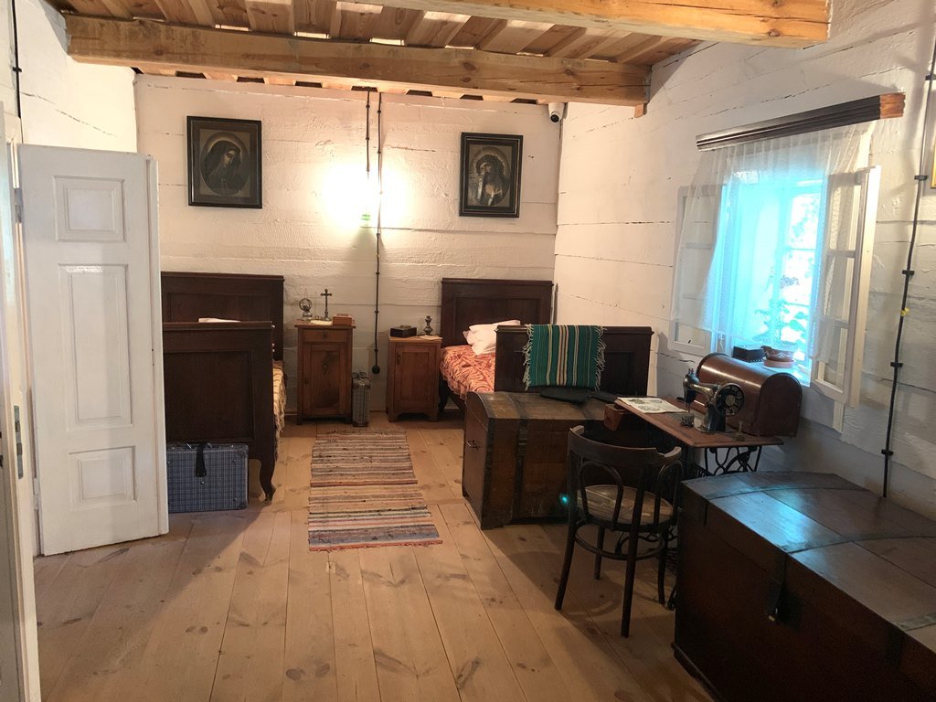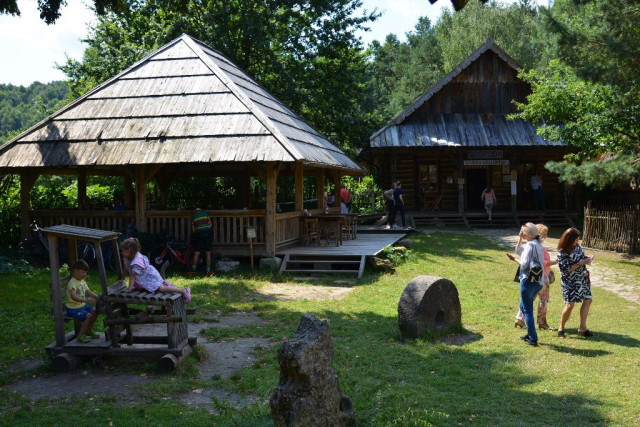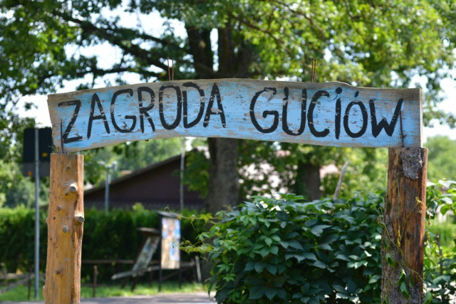 Далі на нас чекали у Гуцюві. 60 років тому пан Станіслав Яхимек придбав тут занехаяне старе обійстя. Та замість того, щоби зрівняти його із землею, облаштував тут музей просто неба.Нині у скансені ніколи не буває безлюдно. Тут можна побачити, як жили колись польські селяни, оглянути різноманітний реманент, ба навіть приміряти старовинний одяг, а ще – смачно пообідати у справжній корчмі, придбати сувеніри й навіть камінці бурштину та прикраси з каміння у крамничці, де заправляє сам власник скансену.У хаті пахне тістом, а від печі віє гарячим духом. На моє здивоване запитання пан Войтек усміхається: так-так, піч тут робоча, у ній господиня випікає усілякі смаколики. Лиш тоді помічаю, що на столі під полотняним рушником сходять пиріжечки.Добряче нагулявши апетит, уздовж річечки Вепр прямуємо обідати на форелеву ферму. Зауважуємо чимало людей, що сплавляються на каяках. Виявляється, такий вид дозвілля дуже популярний у цьому регіоні. Скрізь, де це можливо, туристам пропонують таку атракцію. І, варто сказати, охочих ніде не бракує.