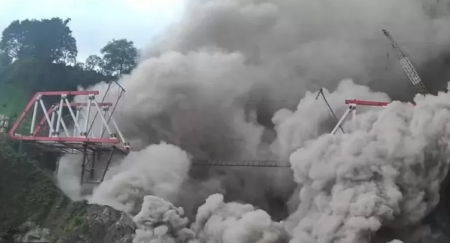 Міст, який відновлювали після попереднього виверження вулкана, сильно пошкоджений.
