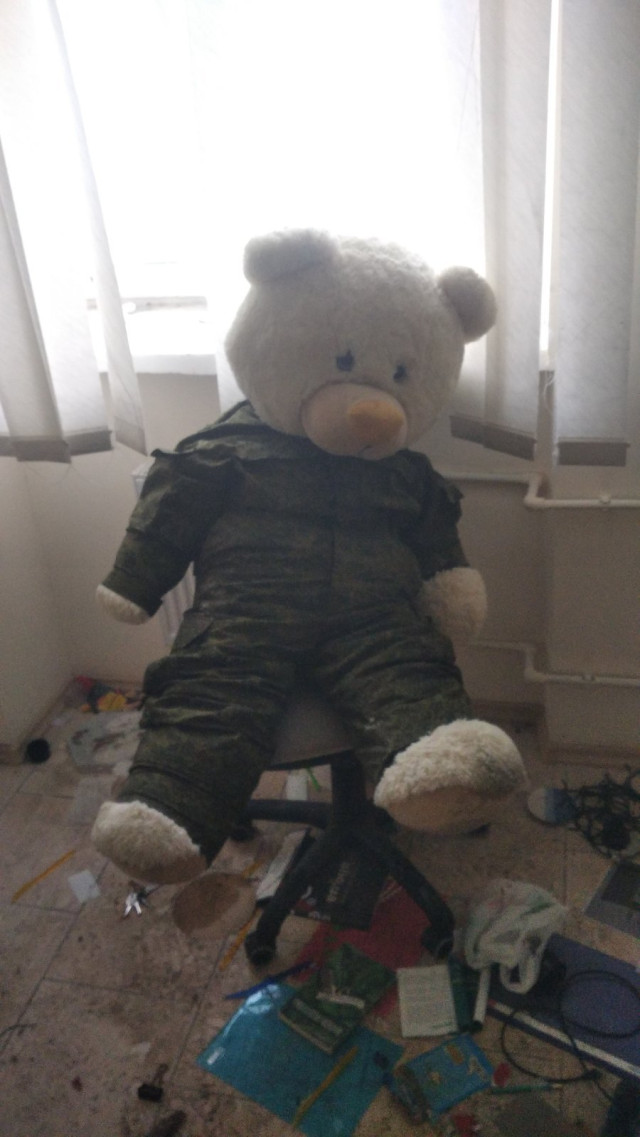Більшість експонатів привезено з Донецької та Харківської областей. У розповідях про них найчастіше звучать Ізюм, Лиман, Барвінкове, Авдіївка, Куп’янськ, Курахове, Ямпіль, Білогорівка, Новоукраїнка, Бахмут, Часів Яр, Вугледар, Шахтарське. Неможливо оминути увагою уламок використаної проти наших земляків ракети реактивної системи залпового вогню «Смерч», який нині в музеї.Зі слів волонтера Юрія, коли везли цей та інші уже відстріляні боєприпаси, на одному з блокпостів їх зупинили представники військової патрульної служби. Туди ж викликали й слідчо-оперативну групу, на вимогу якої довелося писати пояснювальні зі зазначенням паспортних даних, куди і звідки прямують та для якого музею везуть вказані речі.Ми уже встигли звикнути, що все російське несе в собі смерті та руйнування. Разом із речами волонтери привозять з фронту різноманітні історії. Ними тепер ділиться із відвідувачами Берестечківського музею директор Олег Дергай.З-поміж експонатів виставки чітко вирізняється намальована на твердому пластику картина, яку роздобув настоятель Свято-Духівського храму міста Берестечка, волонтер, а на сьогодні військовий капелан отець Володимир. Раніше вона висіла у штабі українських військ прикордонного Херсонського загону. Після того як росіяни захопили територію, свій слід вони залишили й на картині, позначивши її «зетками».Не раз доводилося волонтерам стати свідками москальської підступності та жорстокості. Побачене ще довго відгукуватиметься ненавистю до всього, пов’язаного з росією.Ось одне з таких: у Херсоні, посеред однієї з розграбованих квартир, сидить на стільчику величезний іграшковий ведмідь, споряджений у російську військову форму. Очевидно, що іграшка замінована. Залишається лише уявити, що було б, якби до домівки раніше повернулися її мешканці.Як видиме порівняння – ведмедик, якого подарували волонтерам українські діти. Він як оберіг нині подорожує з хлопцями у волонтерському автомобілі.