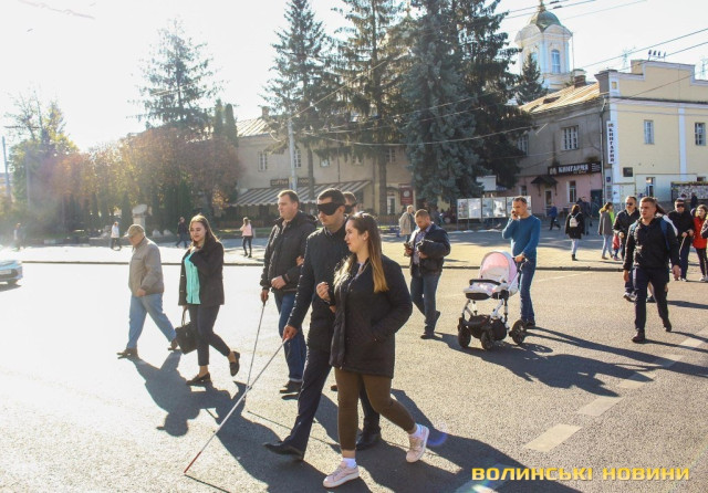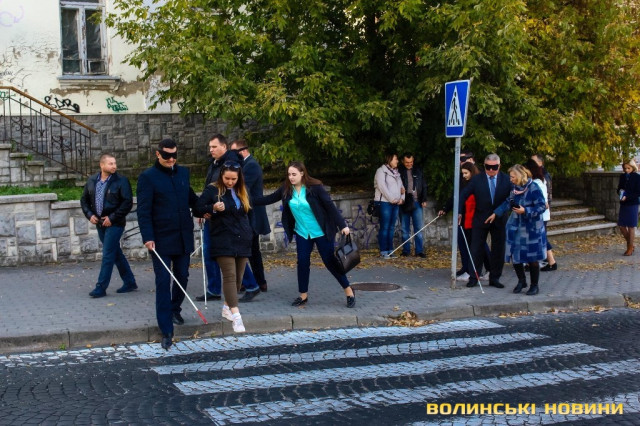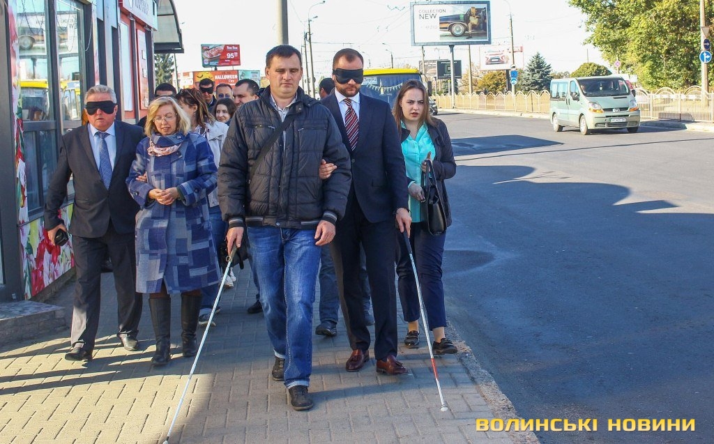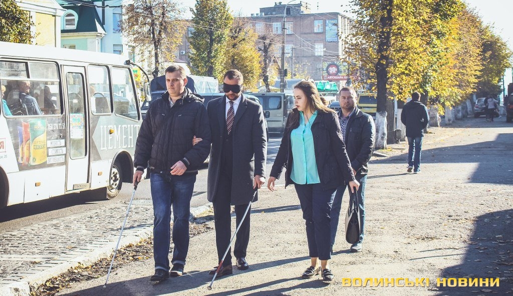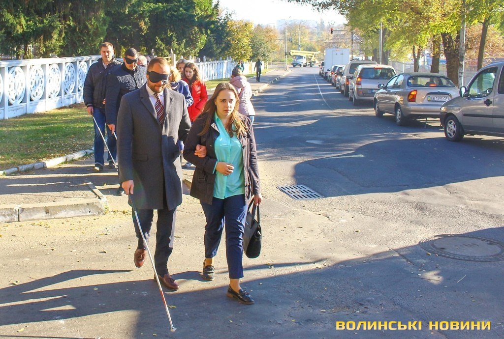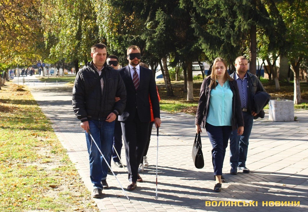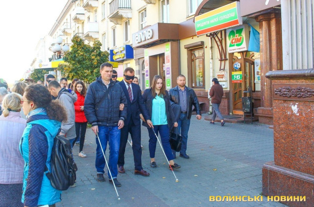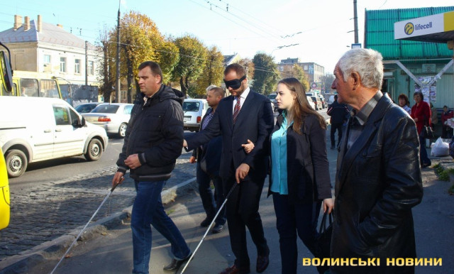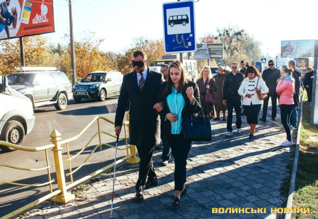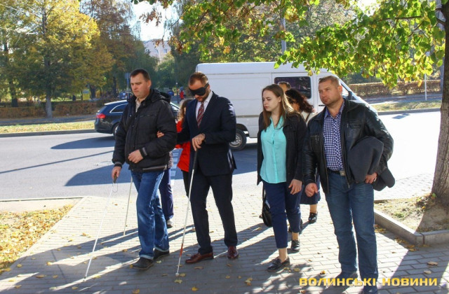 Життя в темряві: посадовці міськради проінспектували доступність Луцька для незрячих. Відео