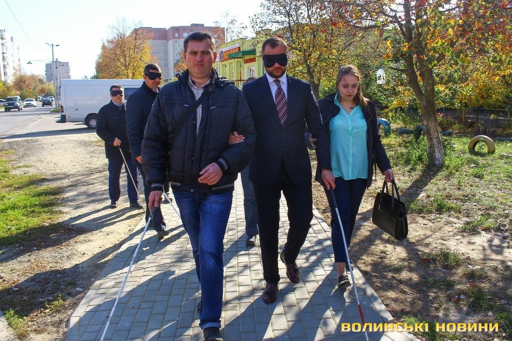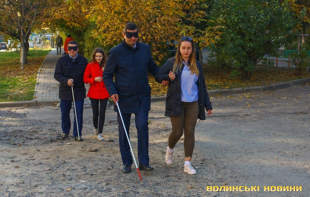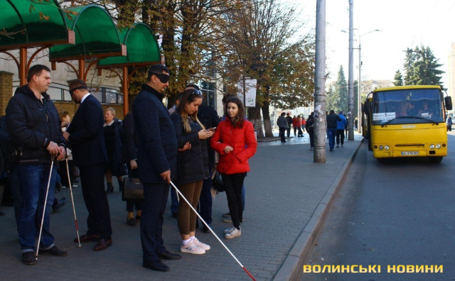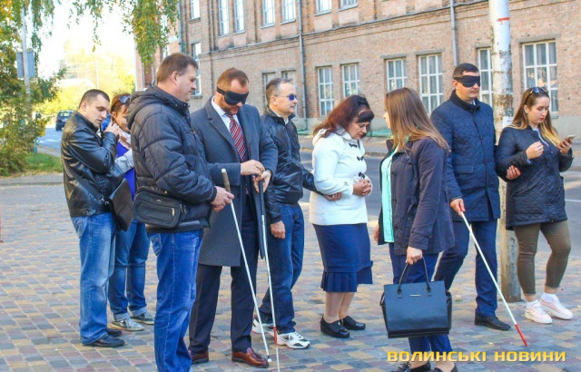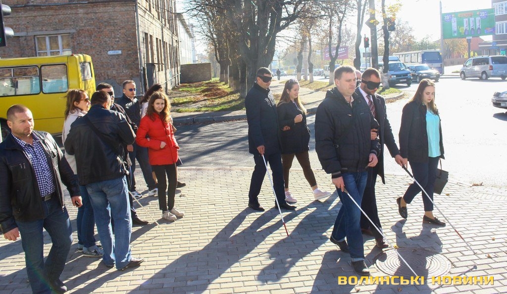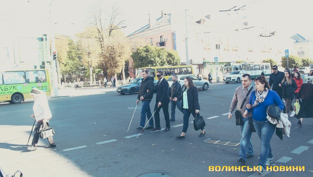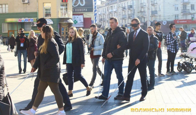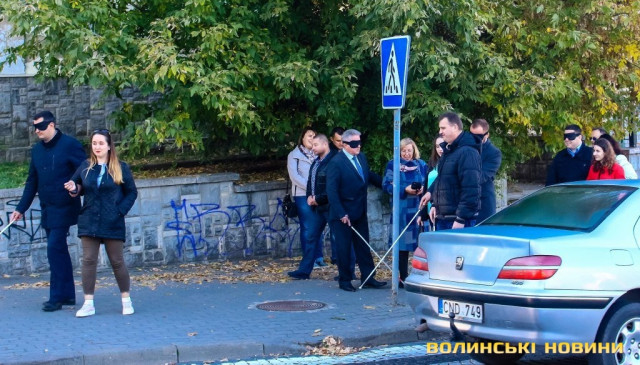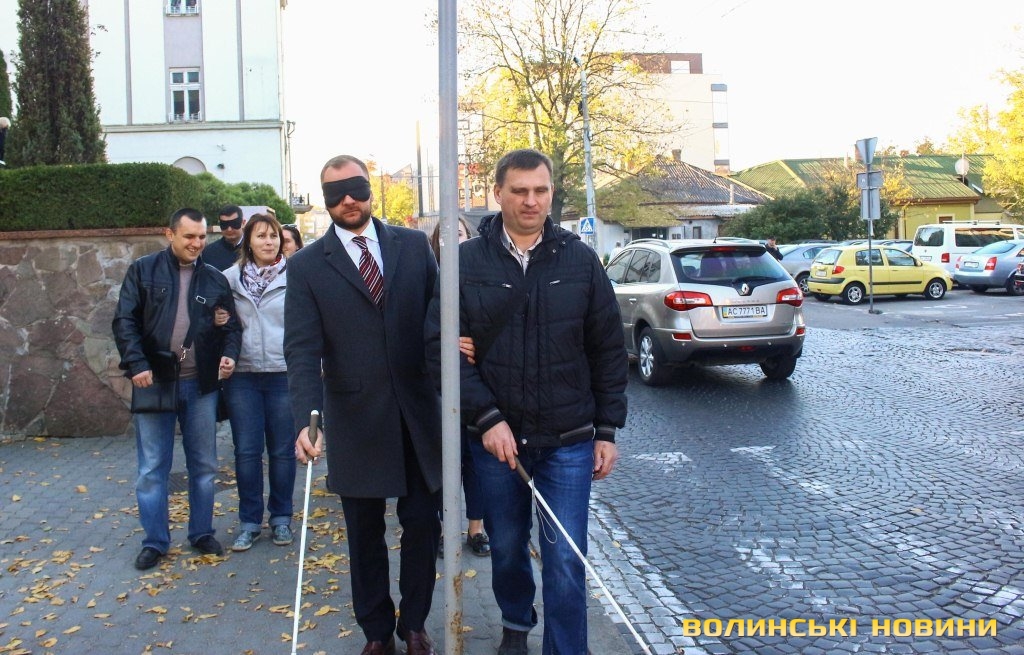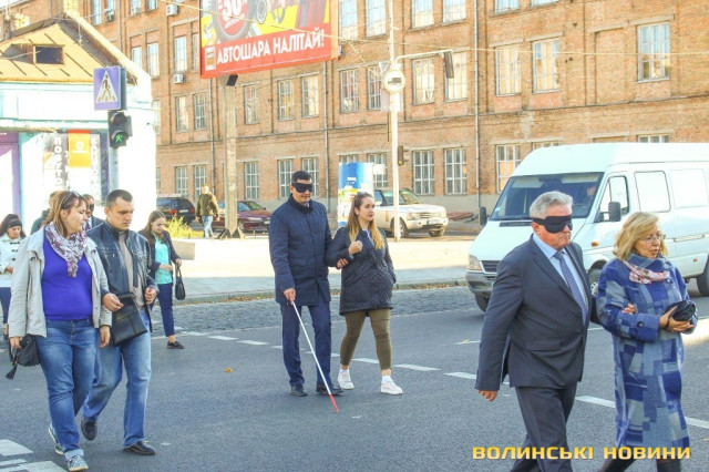 Життя в темряві: посадовці міськради проінспектували доступність Луцька для незрячих. Відео