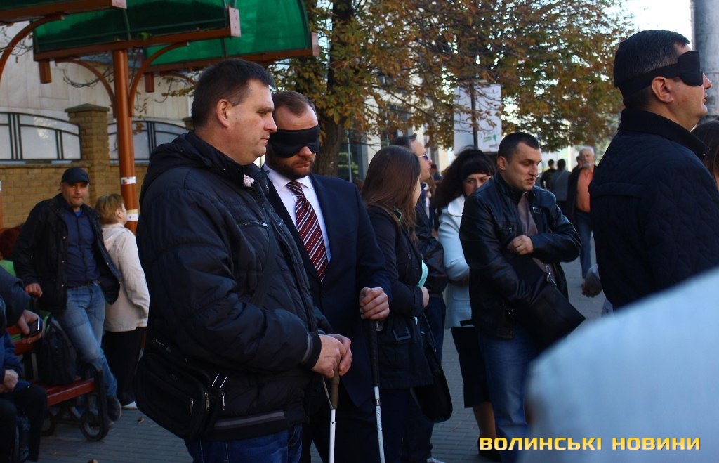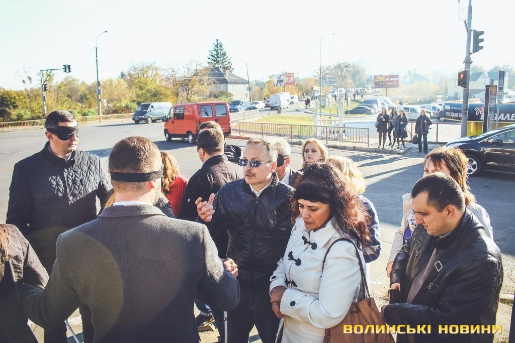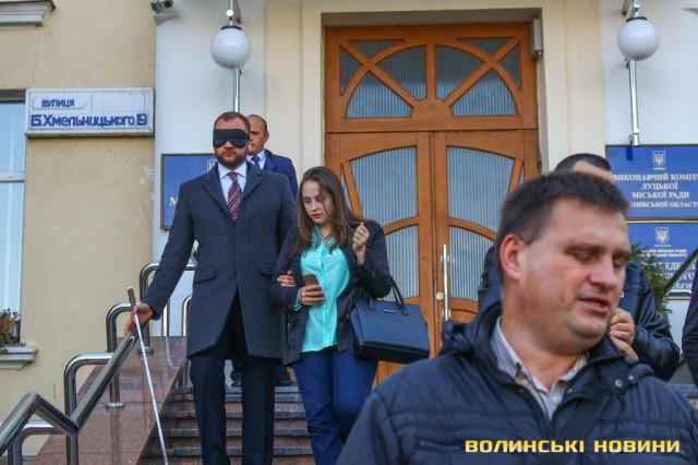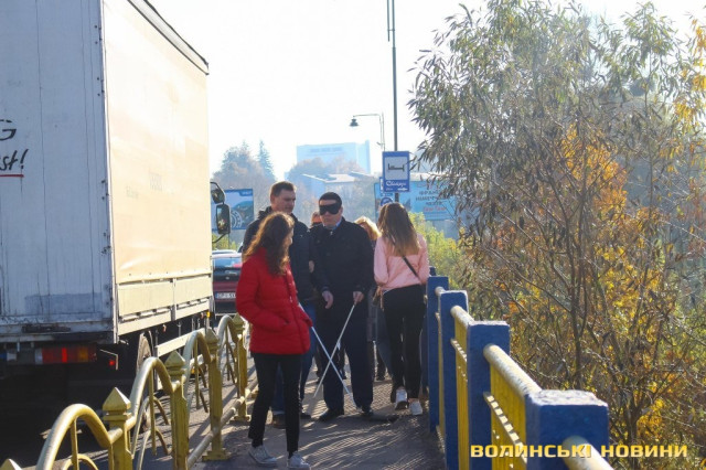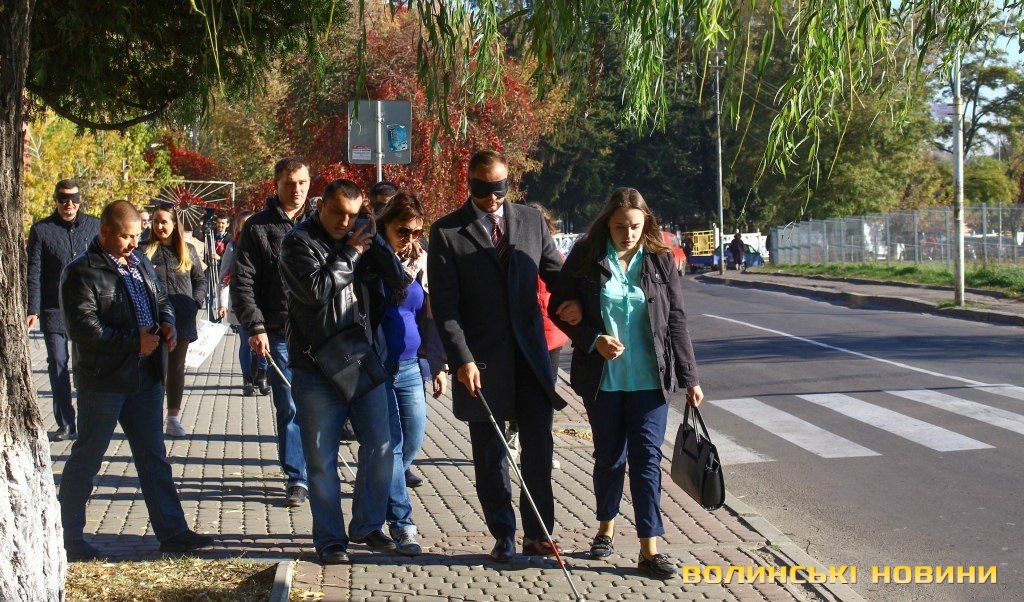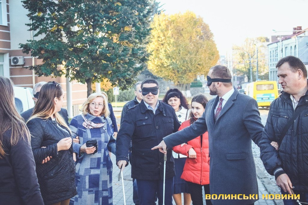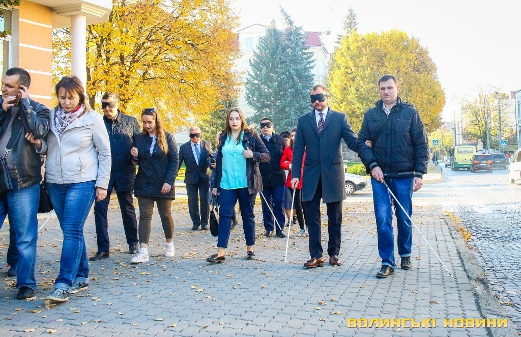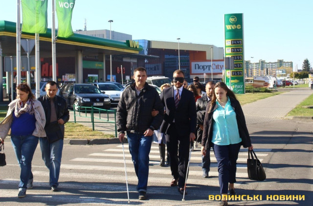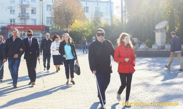 Життя в темряві: посадовці міськради проінспектували доступність Луцька для незрячих. Відео