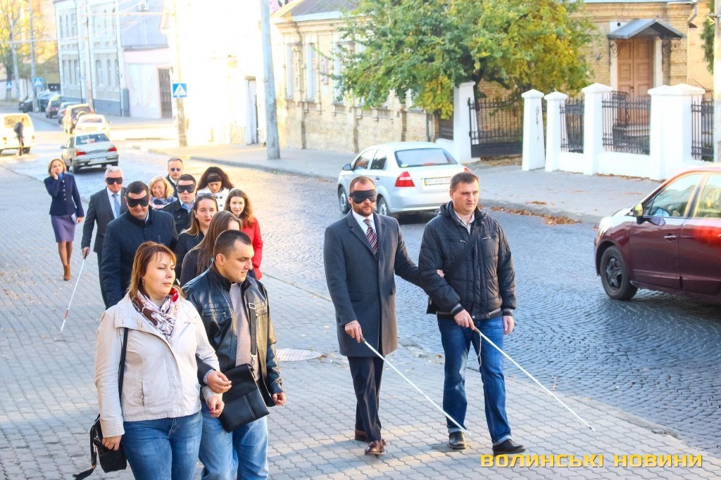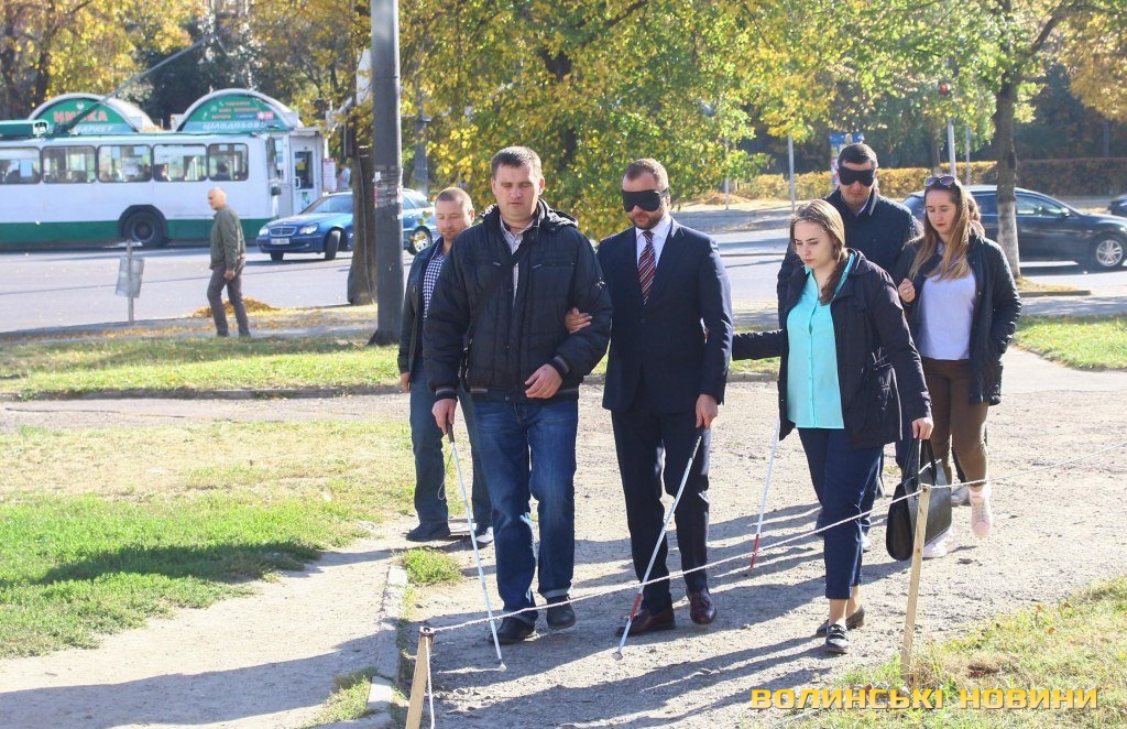 Соціальний експеримент спрямований на привернення уваги до проблем, з якими стикаються незрячі лучани на вулицях міста та на підвищення рівня доступності Луцька. В експерименті брали участь радник міського голови Ігор Поліщук, перший заступник міського голови Григорій Недопад, заступник міського голови Костянтин Петрочук та начальник відділу транспорту та зв’язку міськради Володимир Степанов, голова ГО «Генерація успішної дії» Віталій Ткачук, незрячі лучани та супроводжуючі, а також магістри корекційної освіти, вчителі-тифлопедагоги Ангеліна Чаюк та Анастасія Капітоненко.