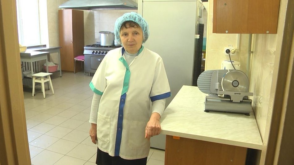 «Сьогодні у нас в меню салат з капусти, суп перловий, макарони, котлети, кава, вафлі і хліб. М'ясо три рази в тиждень, риба є, ковбасні вироби, сардельки. Супи, борщі щодня», – зазначила Галина Сидорук.Зі слів кухарки, на кухні працюють четверо людей, які наразі готують для сотні відвідувачів.