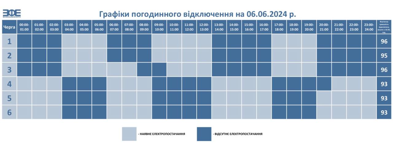 У четвер, 6 червня, у Волинській області діятимуть графіки погодинного відключення електроенергії (ГПВ).