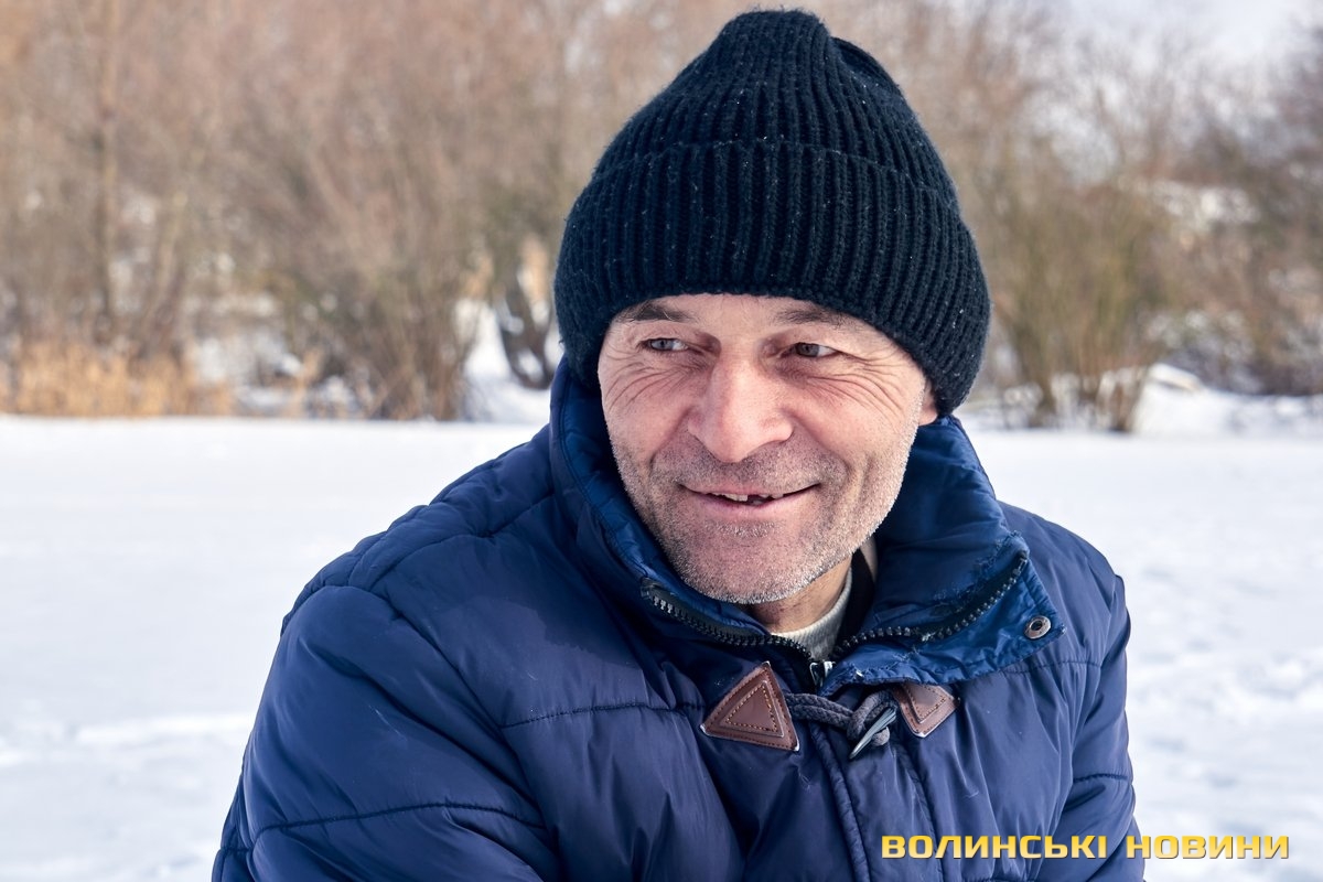 «А то хто ж? Жінка не хоче, – відповідає рибалка. – Та їй і тяжко, то сам раду даю. Як добрий улов, то й дітям віддаю».Пан Микола збирається пройтися трохи далі – може, десь далі рибка таки клюне. Ми ж бажаємо йому, як годиться, ні хвоста, ні луски й чимчикуємо грітися, бо добряче таки змерзли. Атож, зимова риболовля – це вам не відпочинок на пляжі. То справа справжніх фанатів.