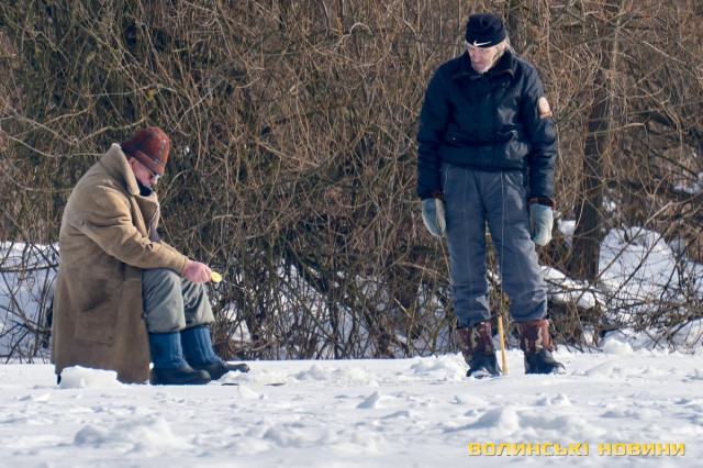 Чоловік зізнається: зимова риболовля для нього – нагода побути наодинці з собою, подихати свіжим повітрям, ну і, звісно, – спортивний азарт.За кілька десятків метрів від Григорія зосереджено ловить рибу Микола Павлович. Каже, зимову риболовлю любить давно, рибалить з років 25-ти. Щоправда, раніше, коли працював, така нагода випадала рідше, а нині може собі дозволити виходити на лід частіше, бо ж пенсіонер.На зимову риболовлю пан Микола зараз неодмінно бере бур, адже лід такий товстий, що пішня не візьме. Ящик для снастей у нього зроблений таким чином, щоб на ньому було зручно сидіти.«Зимова риболовля мені краща тим, що перебуваєш на свіжому повітрі й усюди можна дійти. Хоч не завжди риби зловиш, а душею відпочинеш, – усміхається. – От сьогодні риба не дуже рухається. А от минулої суботи кілограмів зо три хорошої риби зловив, і такі сходи були – капітальні, у пів води. Позавчора – шість плотиць.