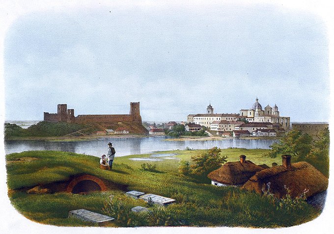 Ми пішли під замок; колись він був могутній і витримав не одну затяту облогу. Облитий довкола водою Стиру і Глушця, стоїть на високій горі, яку вода підмиває, і, розливаючись навесні, оточує його широкими виливами, робить неприступним.