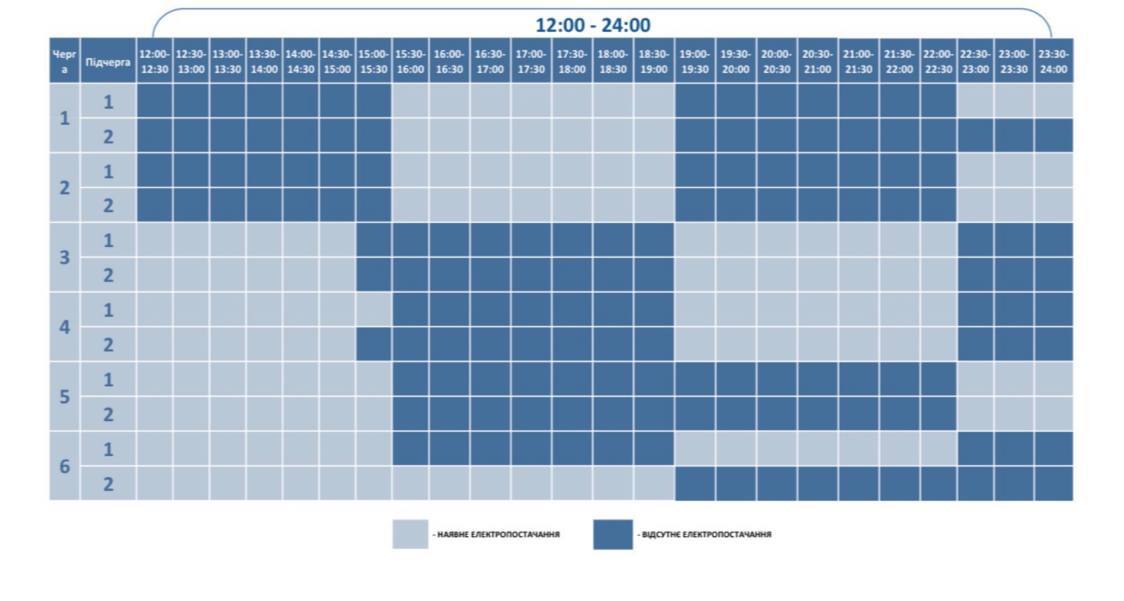 В інтерактивному графіку відображається загальна тривалість вимкнень кожної підчерги відповідно до актуальних даних. Якщо НЕК «Укренерго» скасовує обмеження у певні години, загальний час вимкнень коригують, а зміни відображаються у графіку на наступний день.